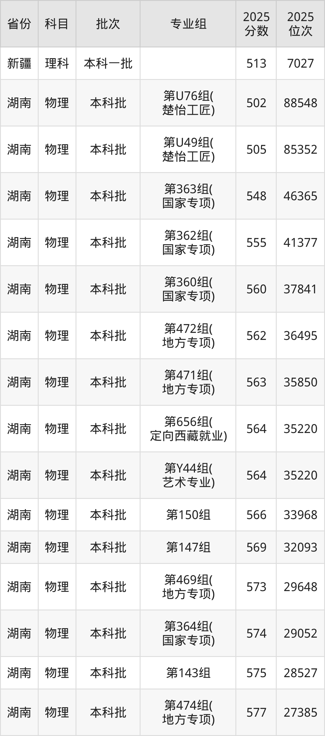 湖南师范大学001组:2025年投档录取最低分为597分,录取最低位次为28614名。