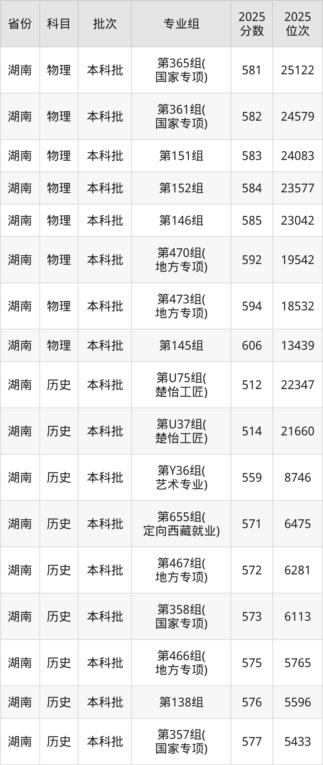 一、湖南师范大学2025录取分数线