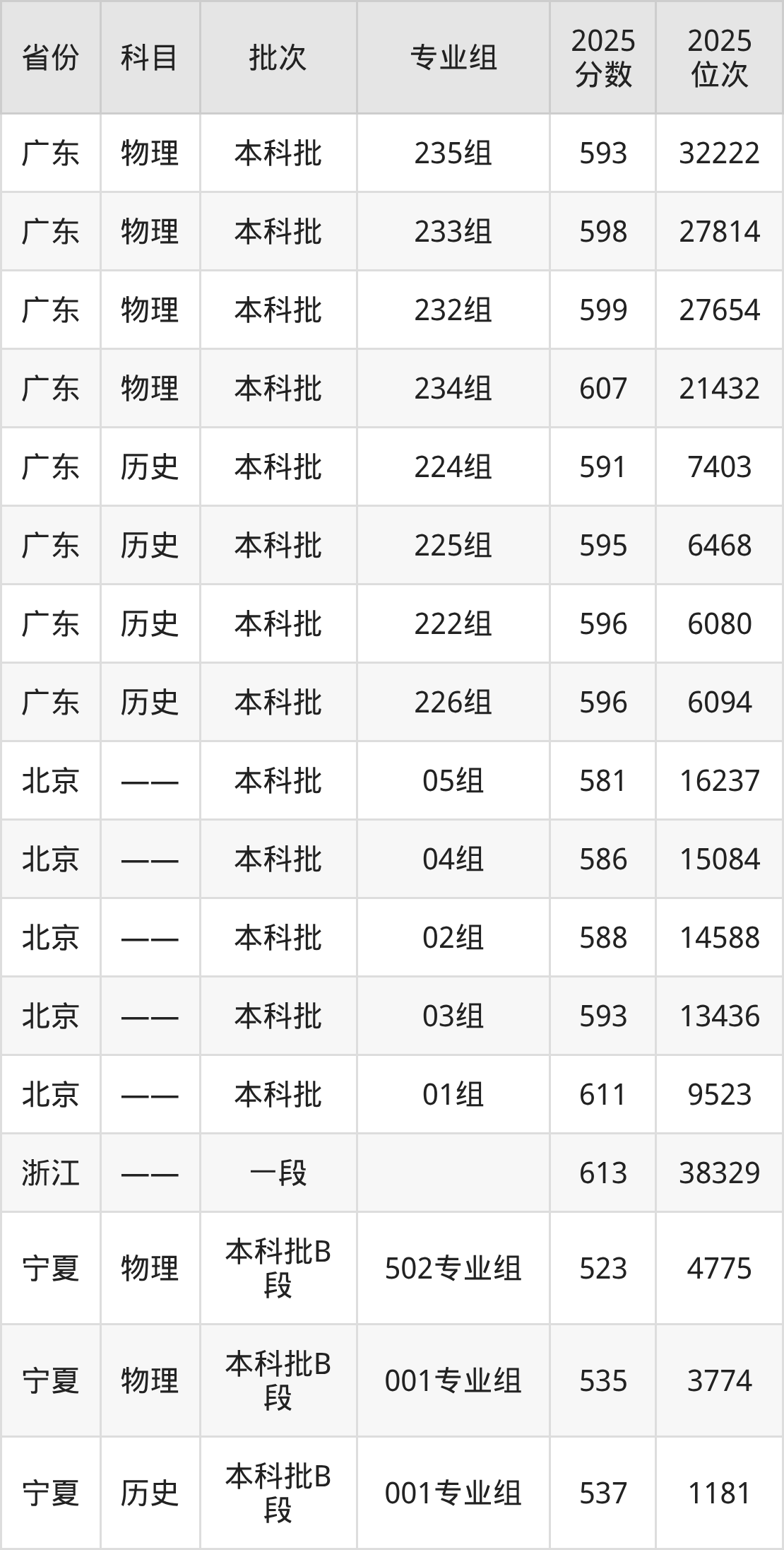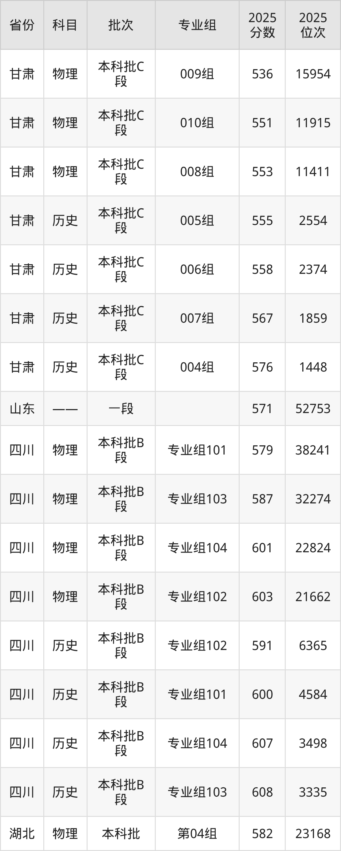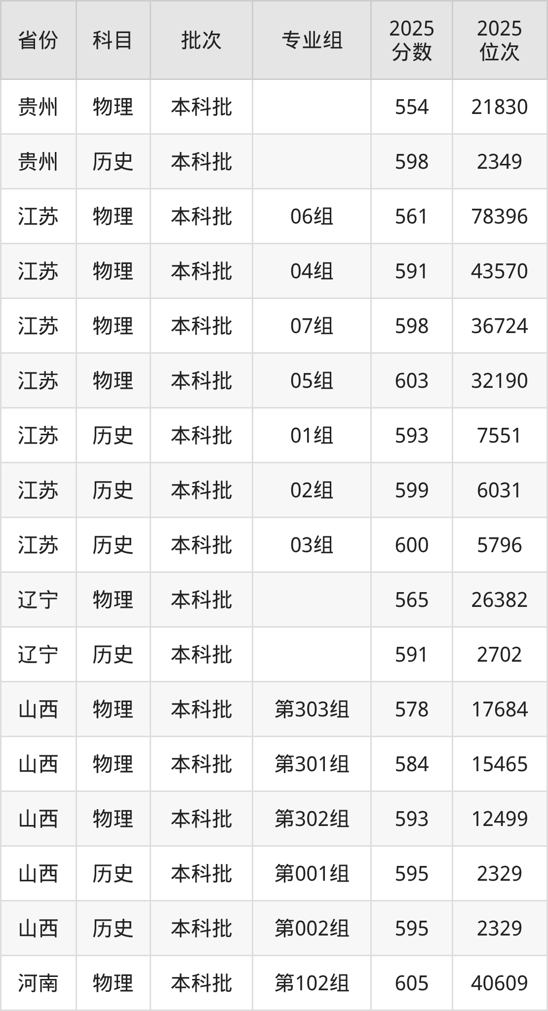 普通类本科物理类最低579分,本科历史类最低591分