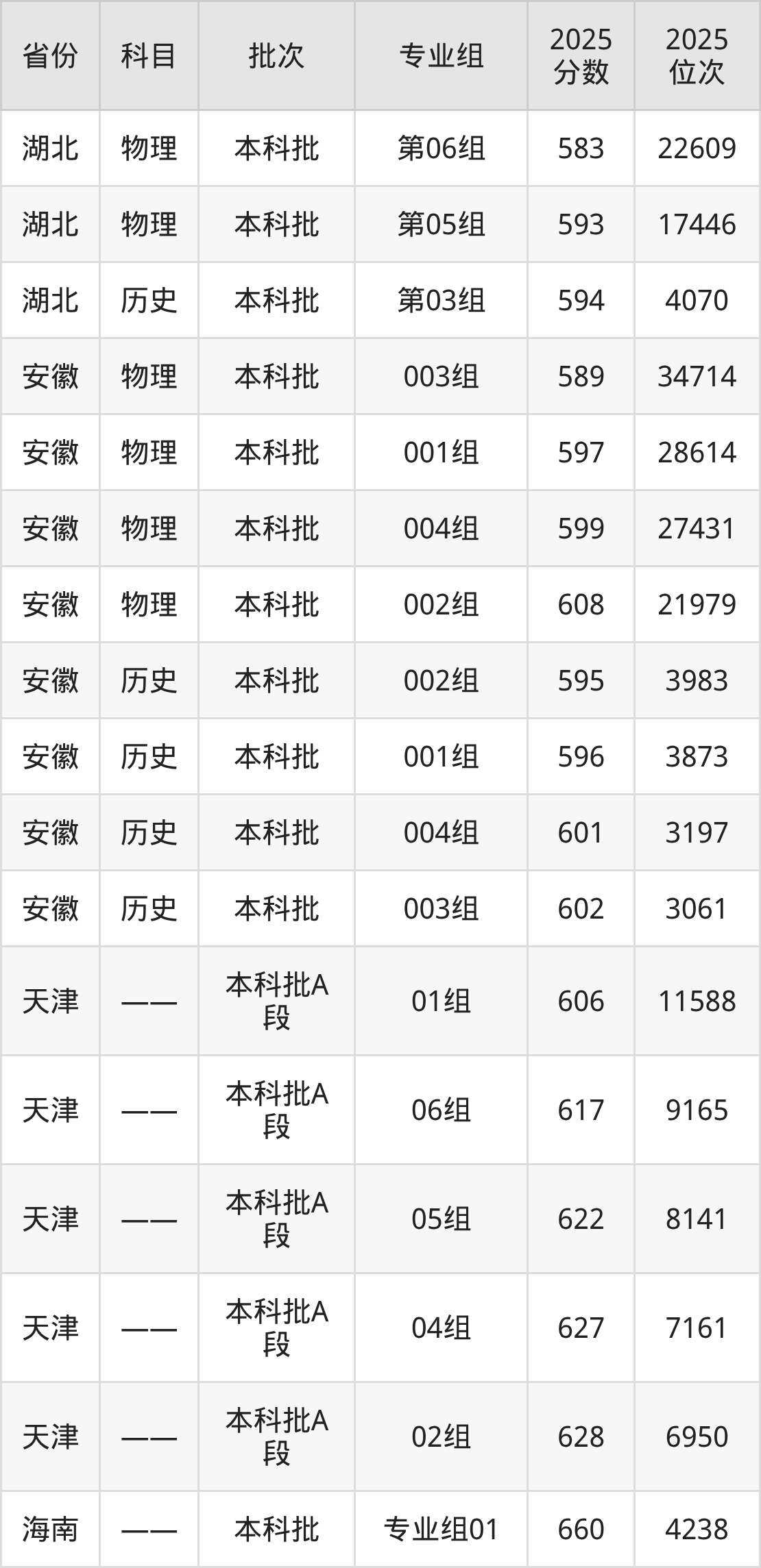湖南师范大学001组:2025年投档录取最低分为596分,录取最低位次为3873名。
