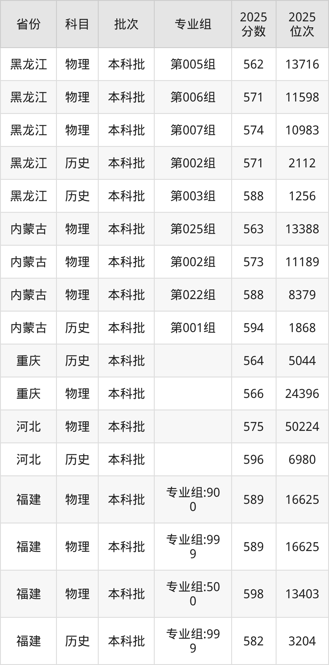 普通类本科物理类最低582分,本科历史类最低594分