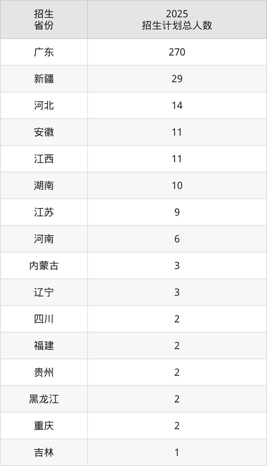 2025年珠海艺术职业学院面向全国16个省市开展专科招生;招生专业共34个,招生人数共377人。2025年在广东省招生计划总人数是270人,其中,珠海艺术职业学院在广东省招生人数最多的是影视多媒体技术。珠海艺术职业学院在各省具体招生人数情况如下表。