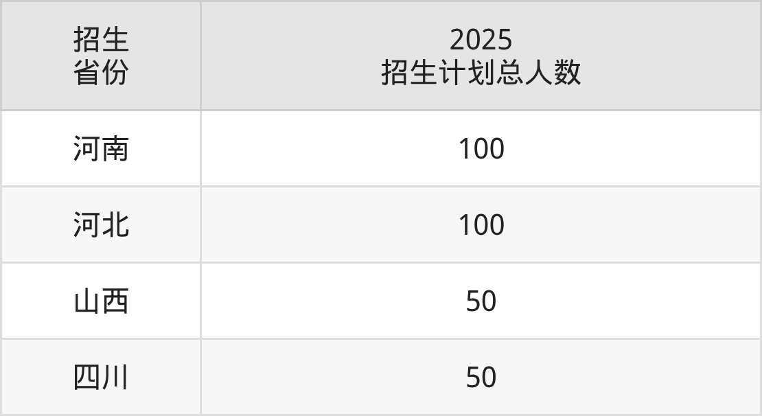2025年山东城市服务职业学院面向全国4个省市开展专科招生;招生专业共5个,招生人数共300人。山东城市服务职业学院在各省具体招生人数情况如下表。