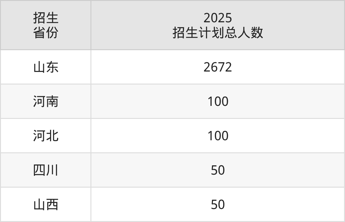 2025年山东城市服务职业学院面向全国5个省市开展专科招生;招生专业共32个,招生人数共2972人。2025年在山东省招生计划总人数是2672人,其中,山东城市服务职业学院在山东省招生人数最多的是西式烹饪工艺。山东城市服务职业学院在各省具体招生人数情况如下表。