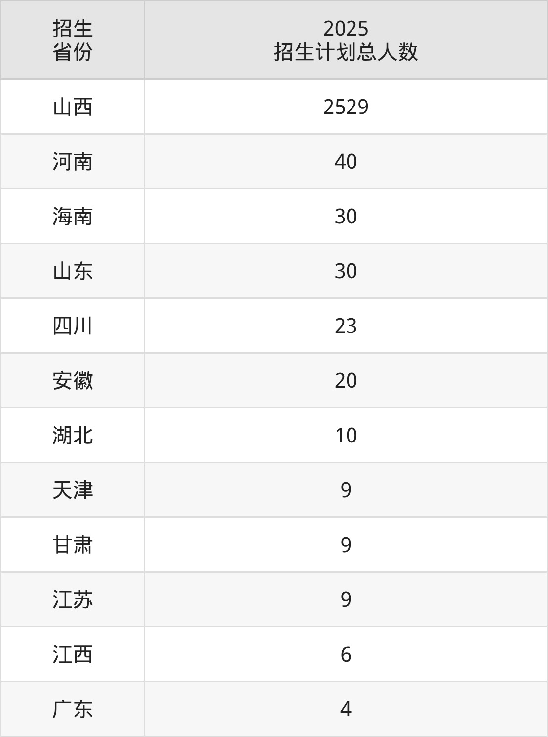 2025年山西科技学院面向全国12个省市开展本科招生;招生专业共25个,招生人数共2719人。