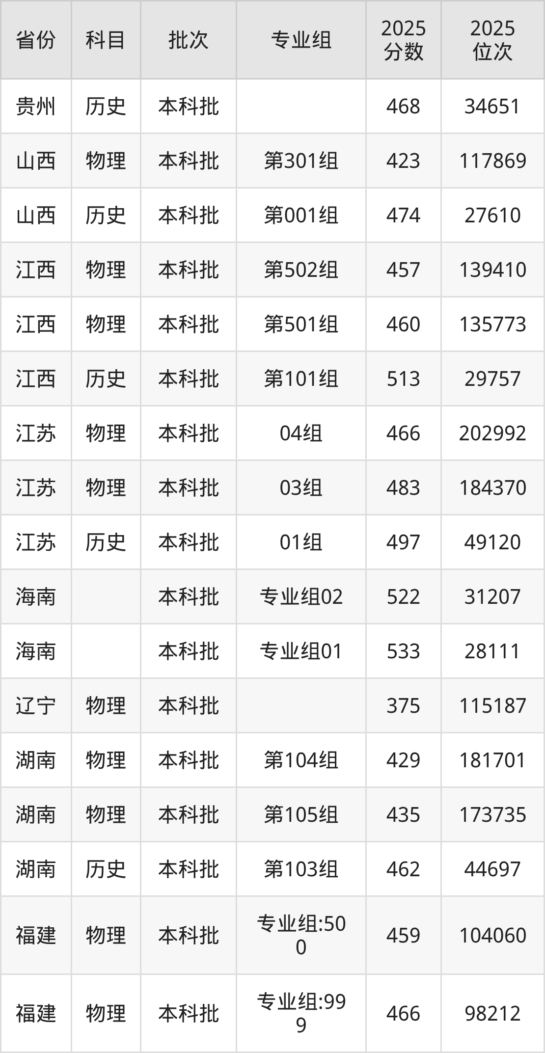 2025年投档录取最低分为468分,录取最低位次为34651名。