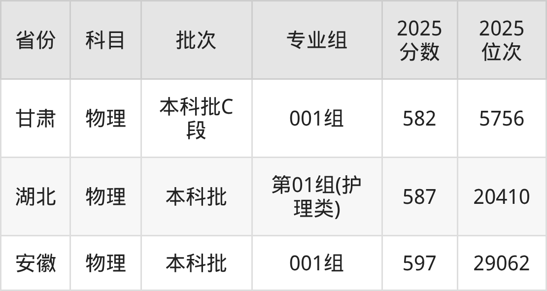 北京协和医学院001专业组:2025年投档录取最低分为582分。