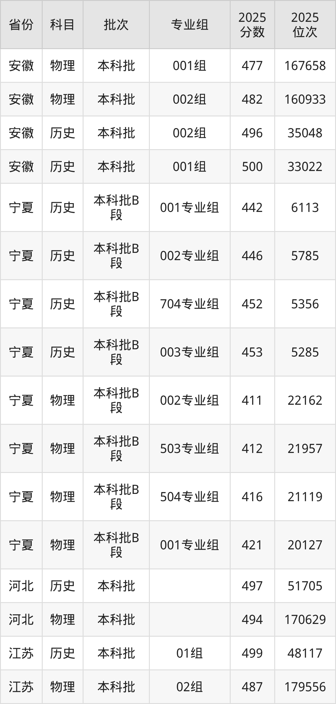 2025年投档录取最低分为457分,录取最低位次为87578名。