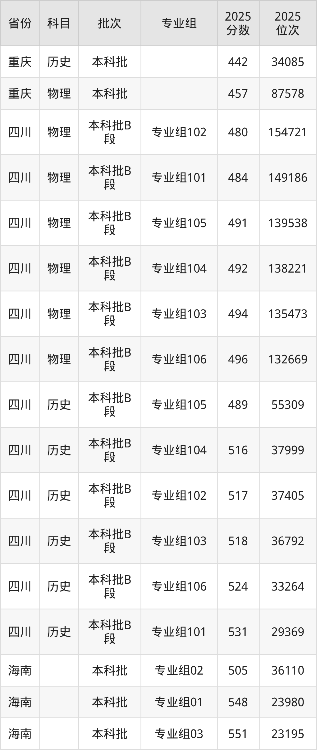 重庆人文科技学院专业组102:2025年投档录取最低分为517分,录取最低位次为37405名。