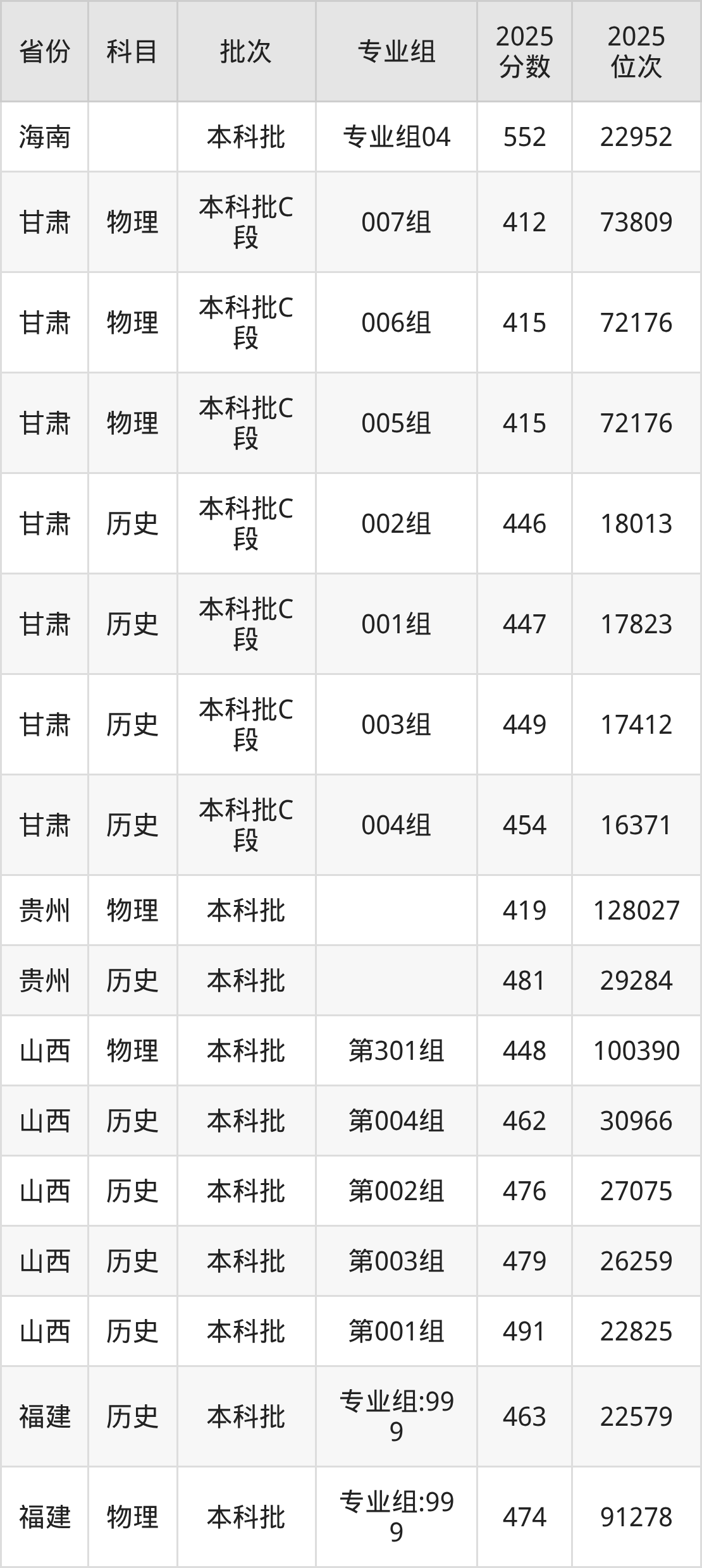 2025年投档录取最低分为330分,录取最低位次为14519名。