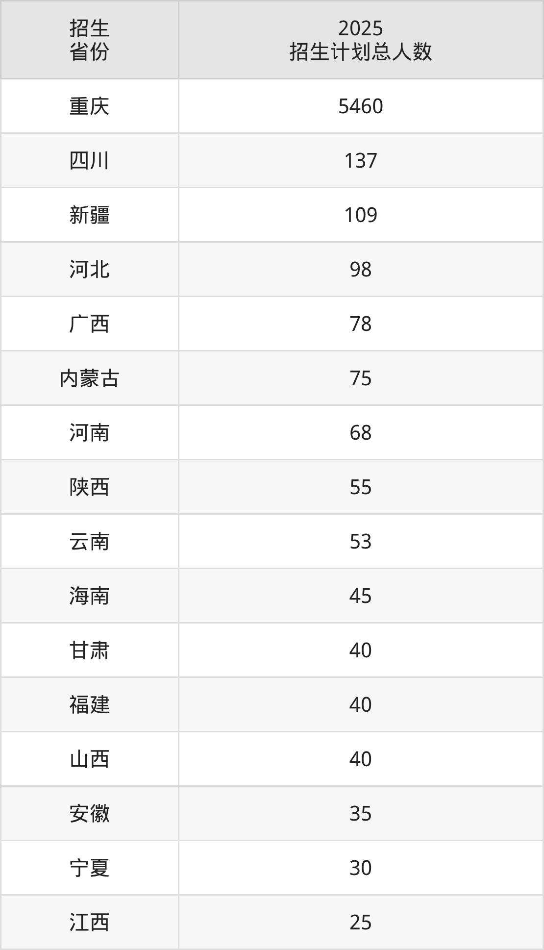 2025年重庆人文科技学院面向全国20个省市开展本科招生;招生专业共31个,招生人数共6448人。