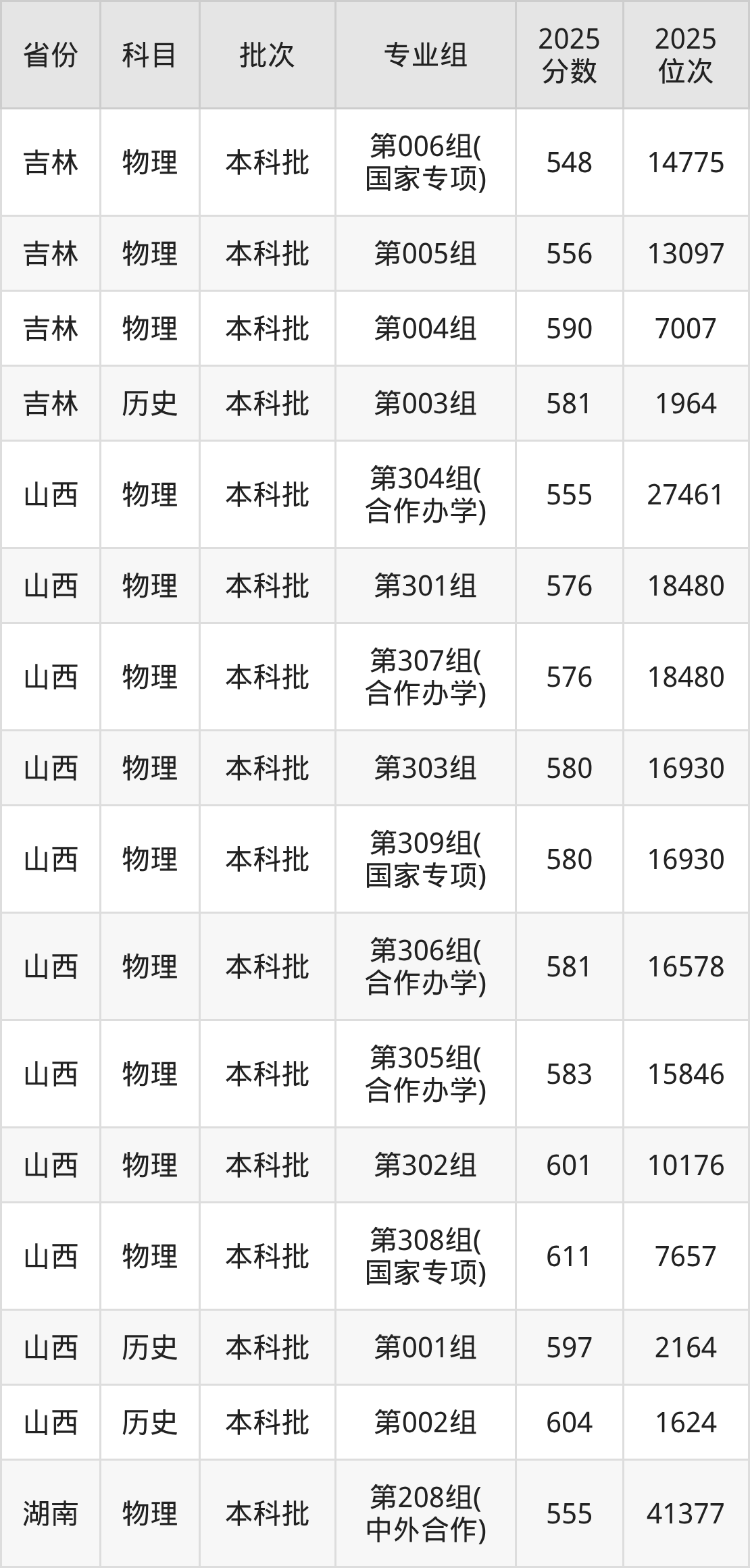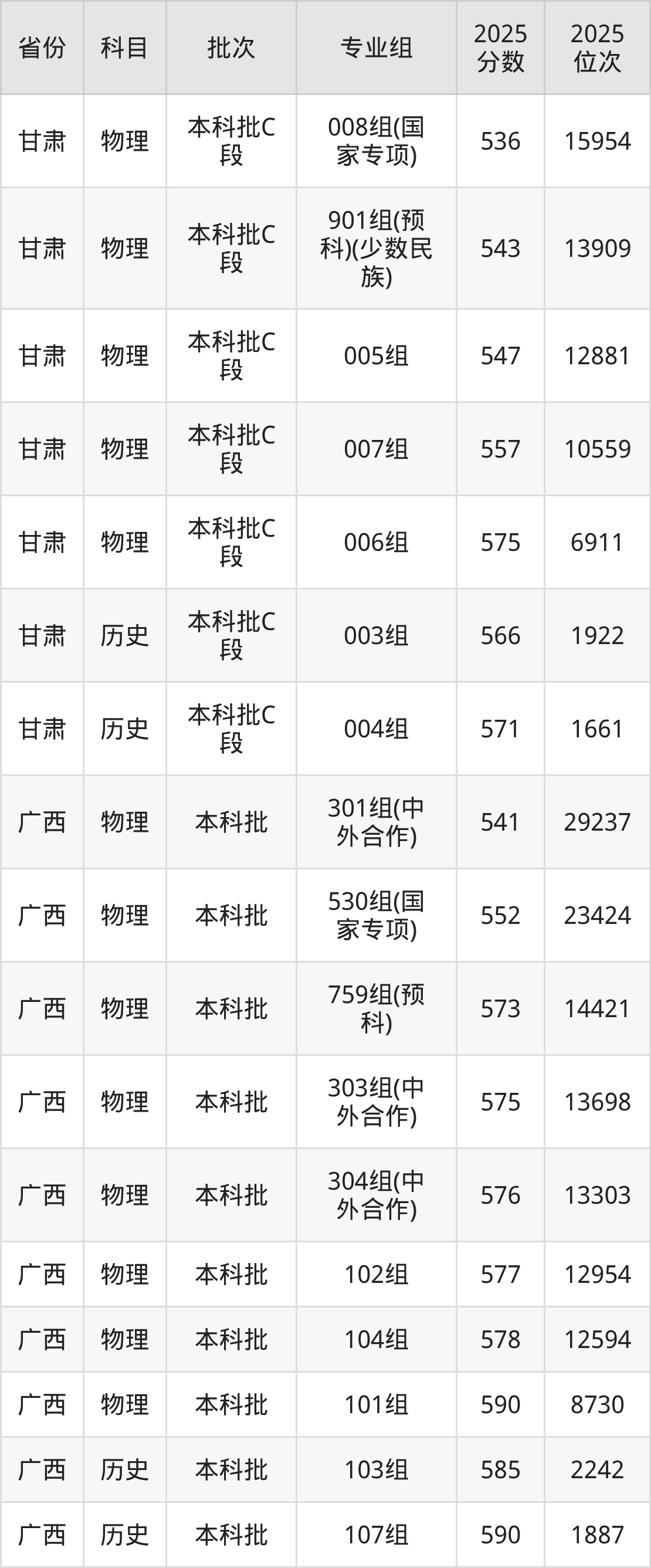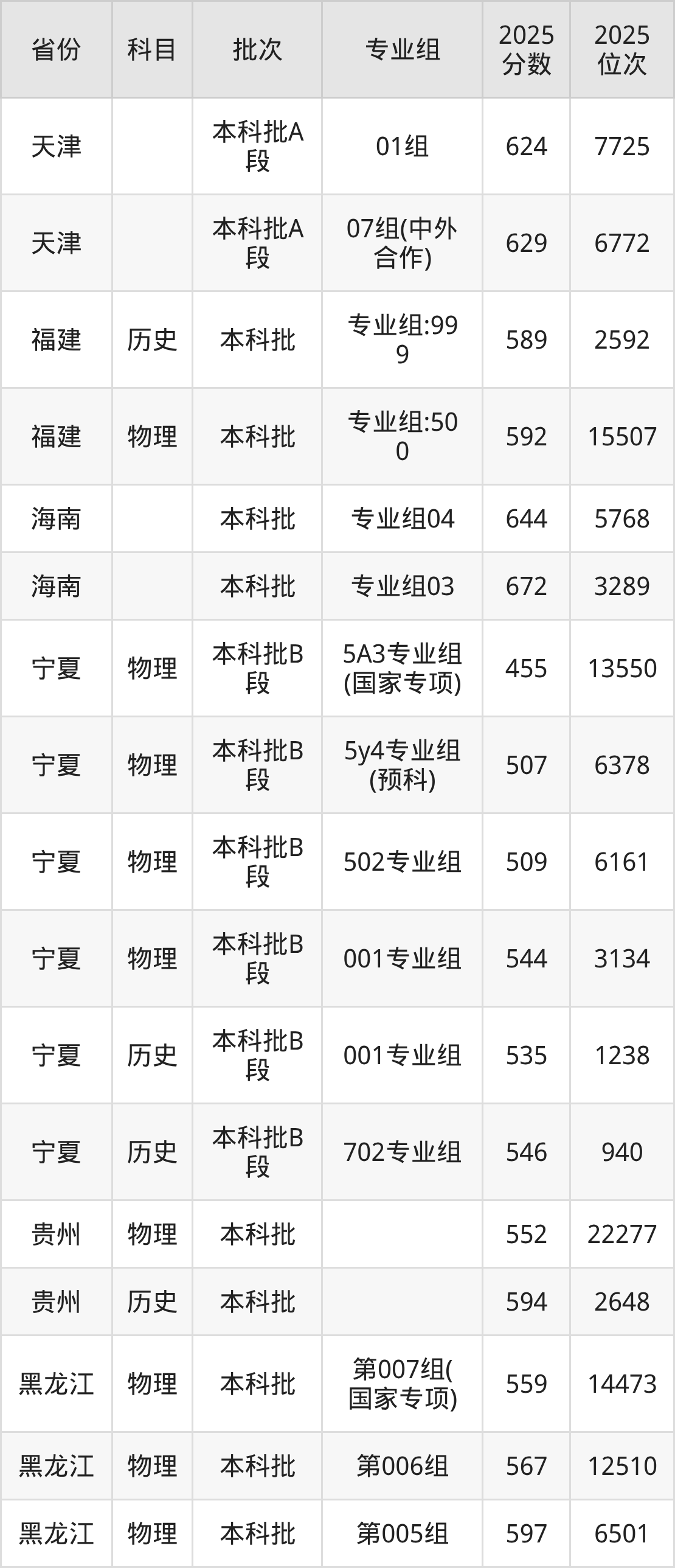 2025年投档录取最低分为552分,录取最低位次为22277名。