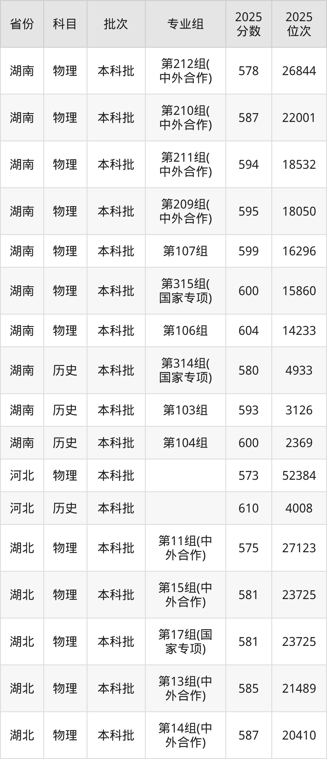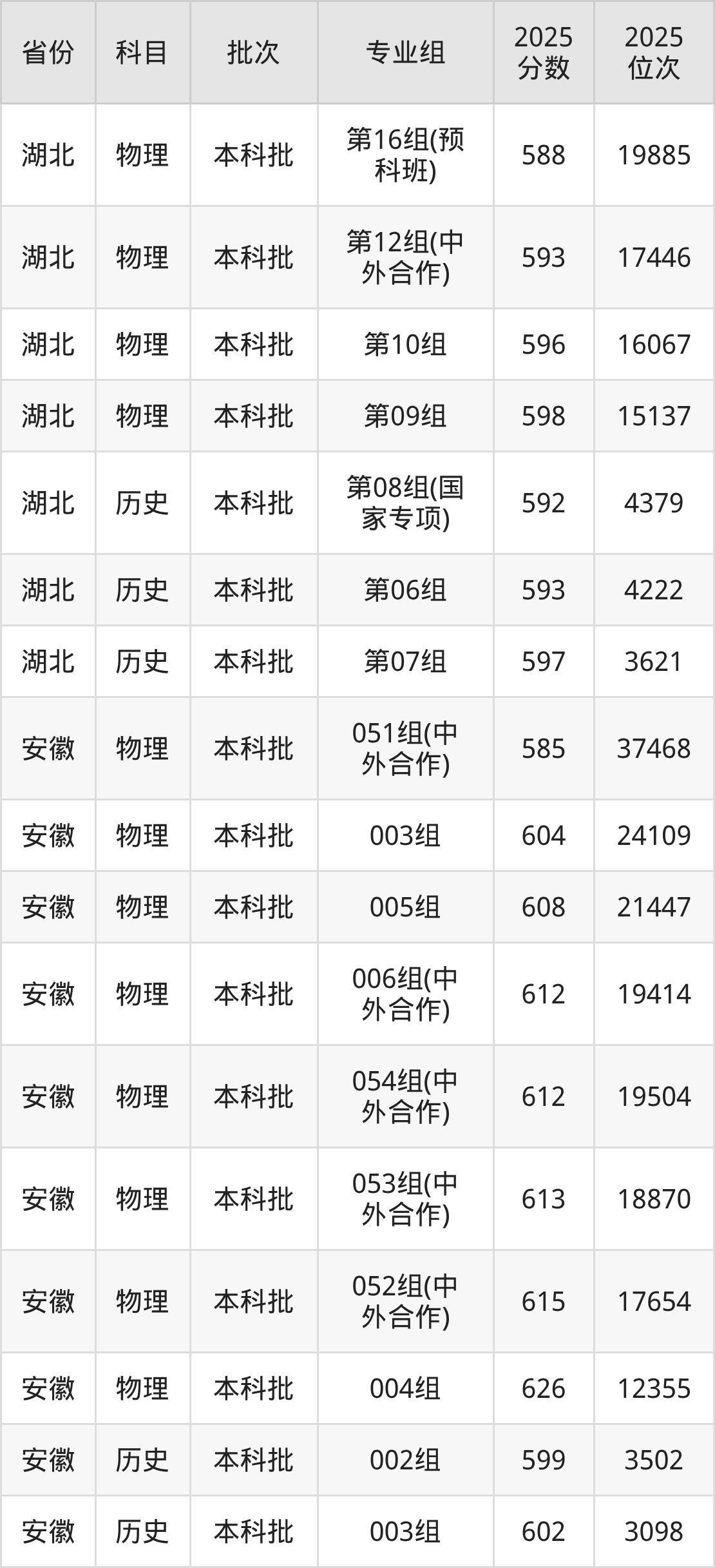 中国地质大学(武汉)05组(中外合作办学):2025年投档录取最低分为601分,录取最低位次为33985名。