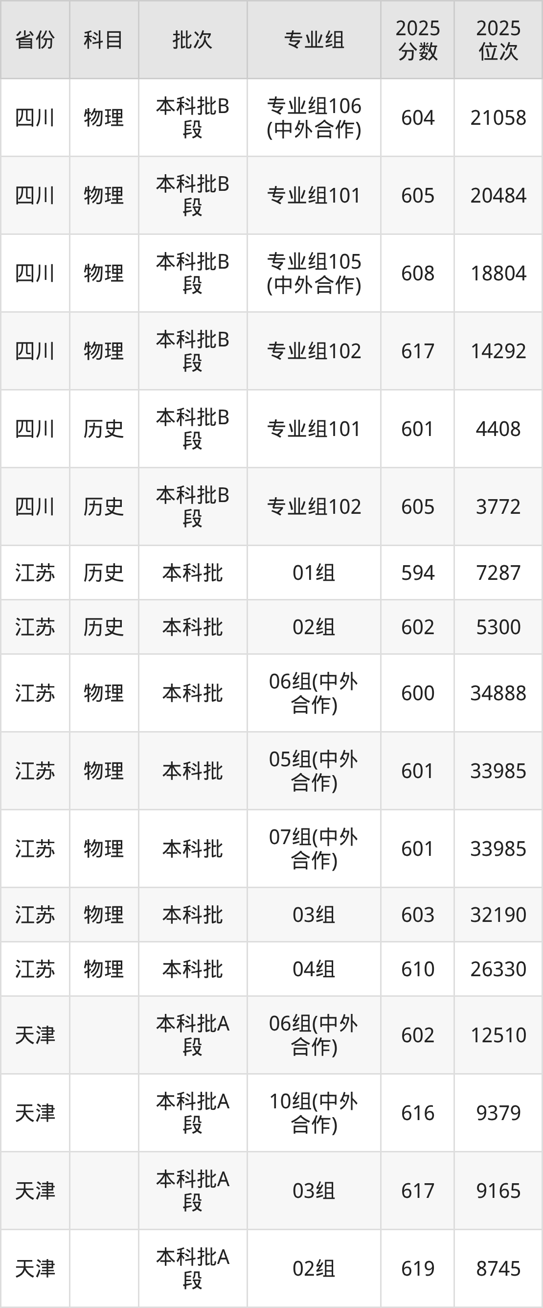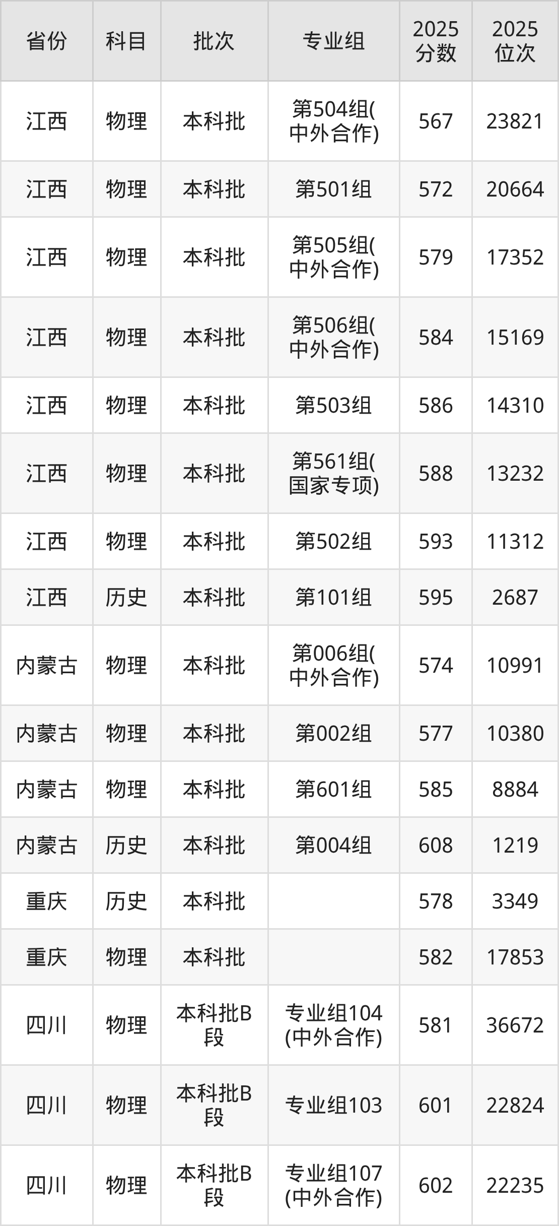 机械设计制造及其自动化(中外合作办学):2025年投档录取最低分为597分。