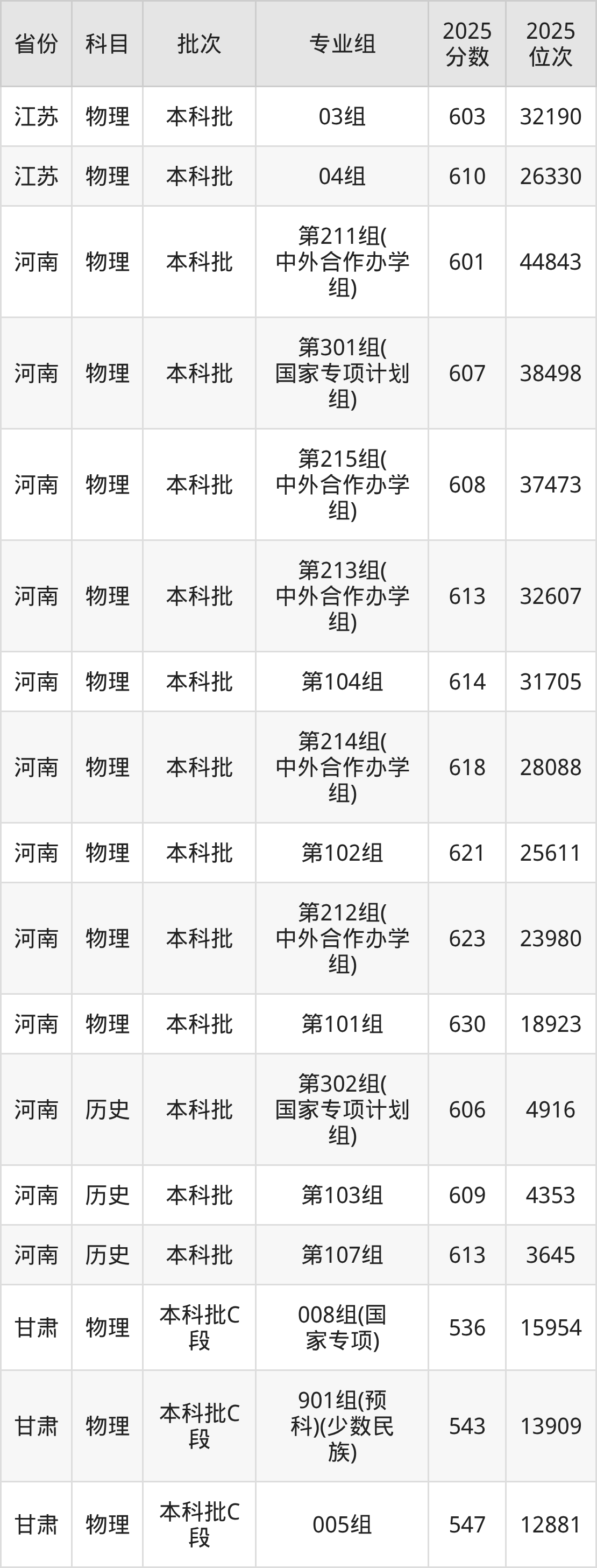 普通类本科物理类最低574分,本科历史类最低608分
