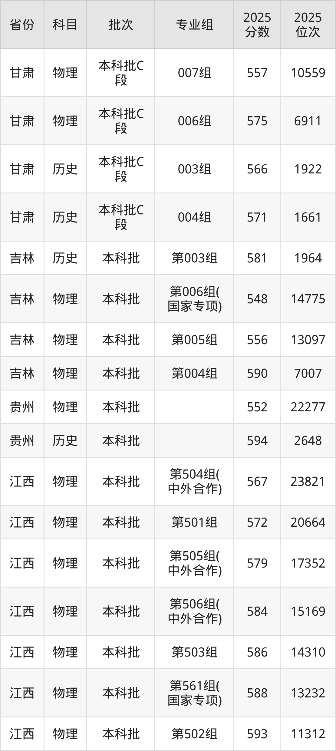 普通类本科物理类最低548分,本科历史类最低581分