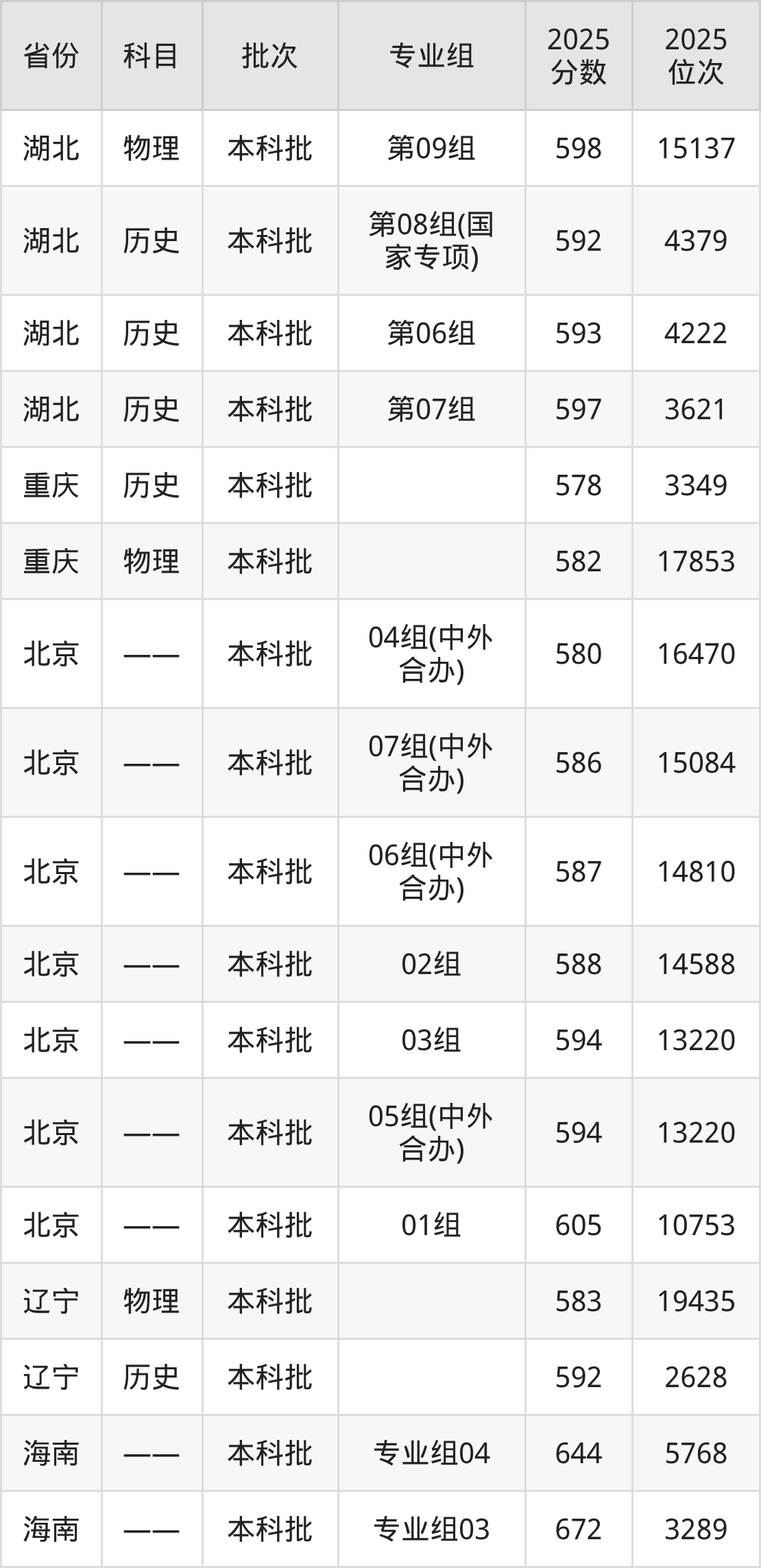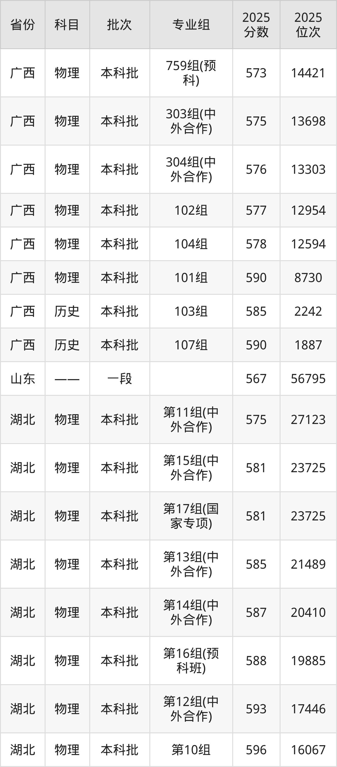中国地质大学(武汉)第002组:2025年投档录取最低分为577分,录取最低位次为10380名。