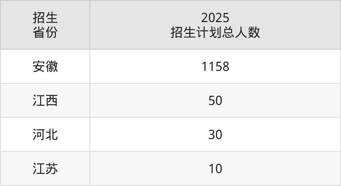 2025年滁州城市职业学院面向全国4个省市开展专科招生;招生专业共29个,招生人数共1248人。2025年在安徽省招生计划总人数是1158人,其中,滁州城市职业学院在安徽省招生人数最多的是药学。滁州城市职业学院在各省具体招生人数情况如下表。