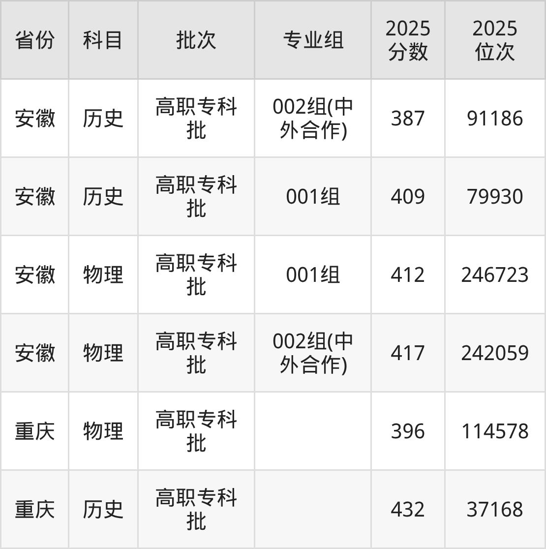 安徽审计职业学院002组(中外合作办学):2025年投档录取最低分为387分,录取最低位次为91186名。