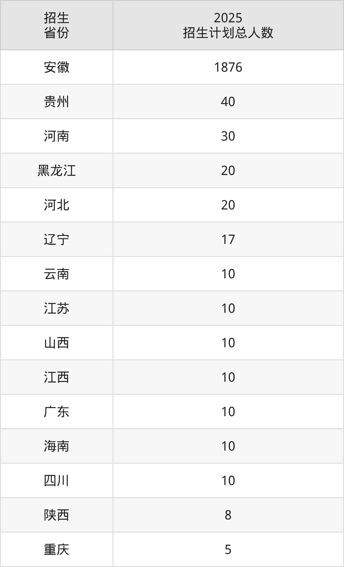 2025年安徽审计职业学院面向全国15个省市开展专科招生;招生专业共29个,招生人数共2086人。2025年在安徽省招生计划总人数是1876人,其中,安徽审计职业学院在安徽省招生人数最多的是大数据与会计。安徽审计职业学院在各省具体招生人数情况如下表。