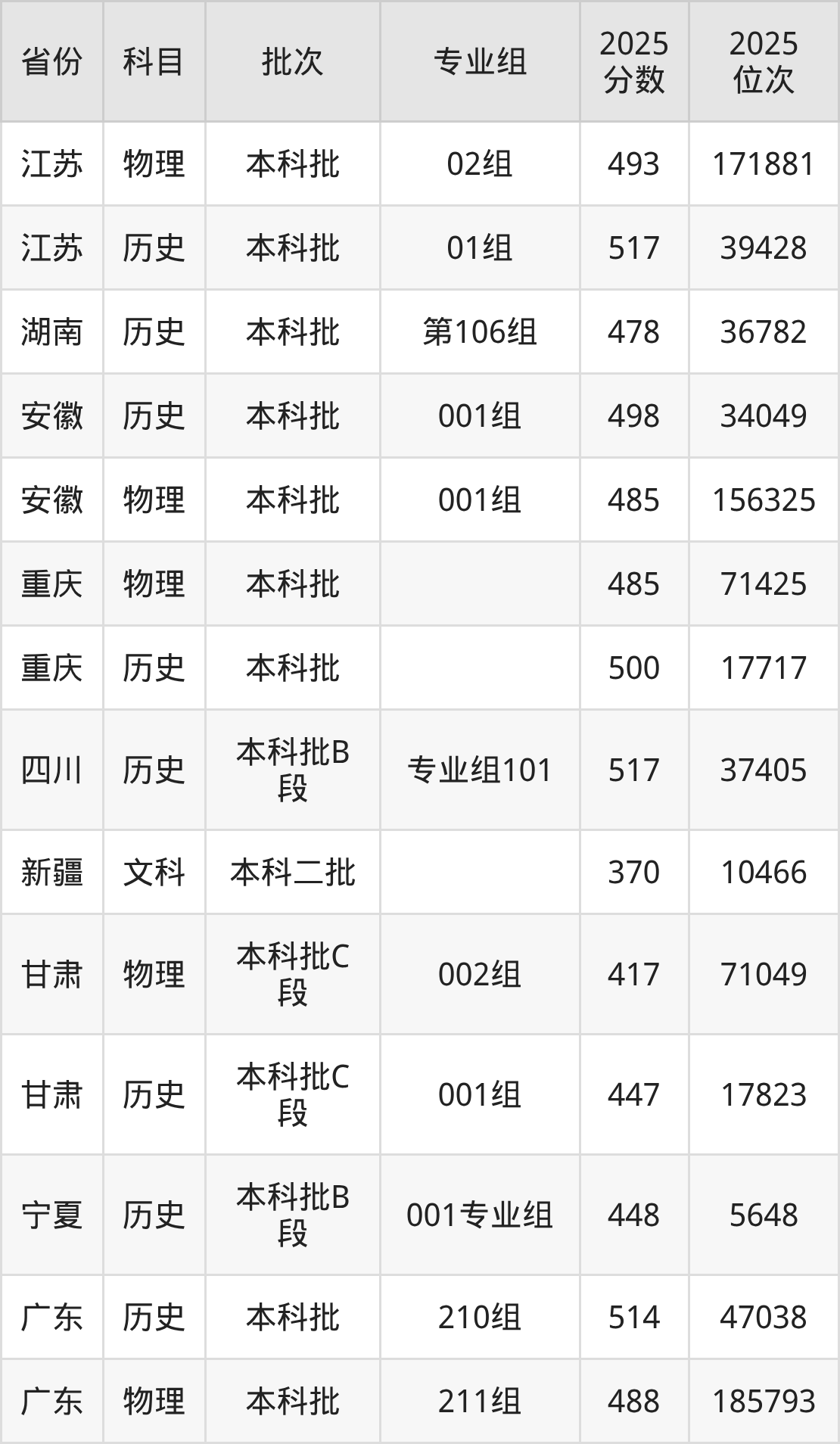 2025年投档录取最低分为500分,录取最低位次为17717名。