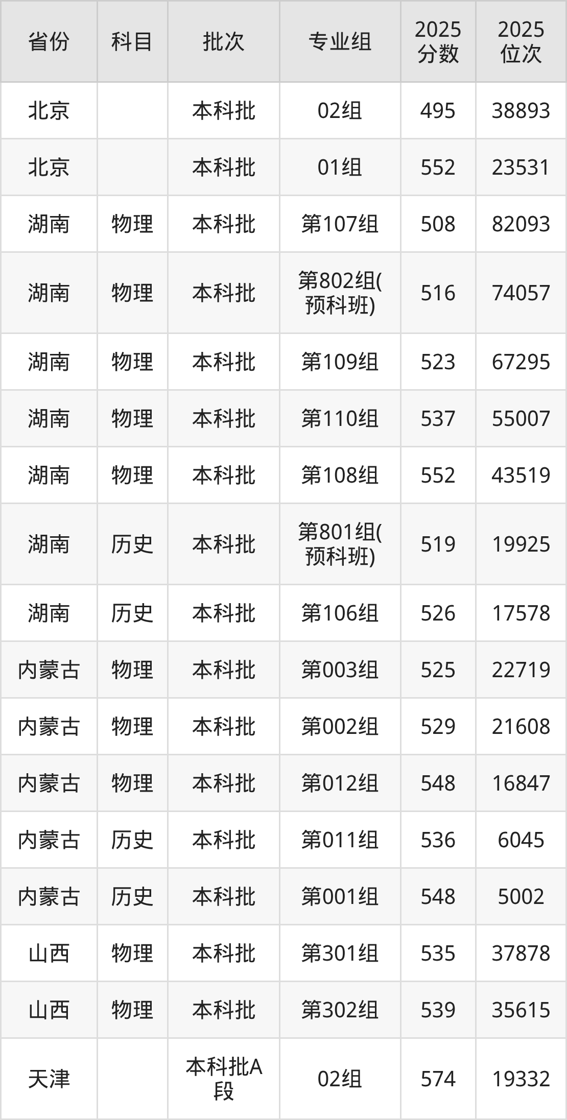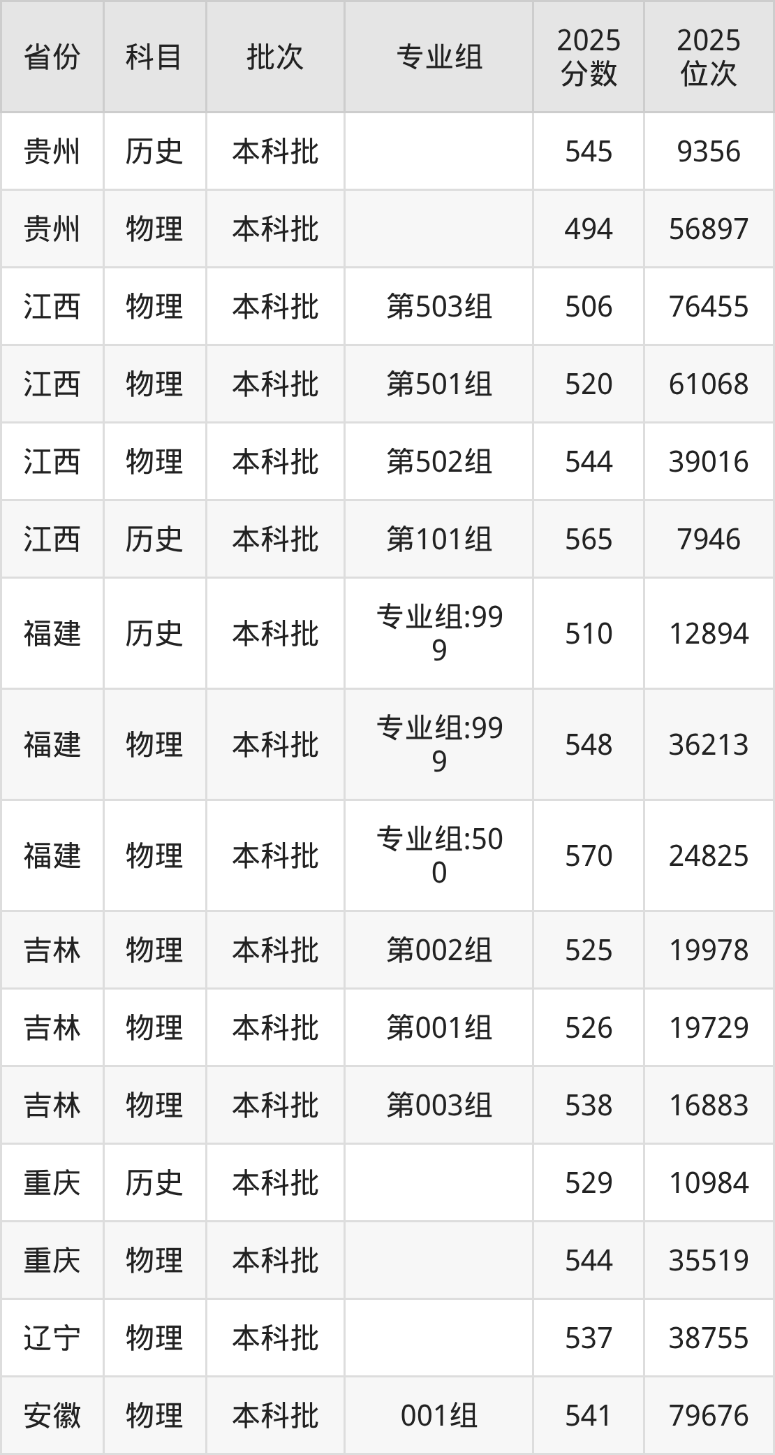 2025年投档录取最低分为545分,录取最低位次为9356名。