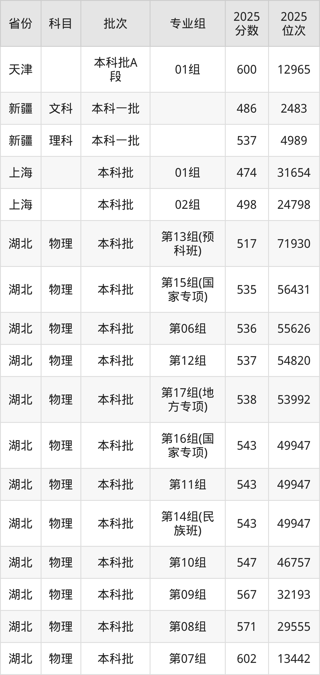 三峡大学第17组(地方专项计划):2025年投档录取最低分为538分,录取最低位次为53992名。