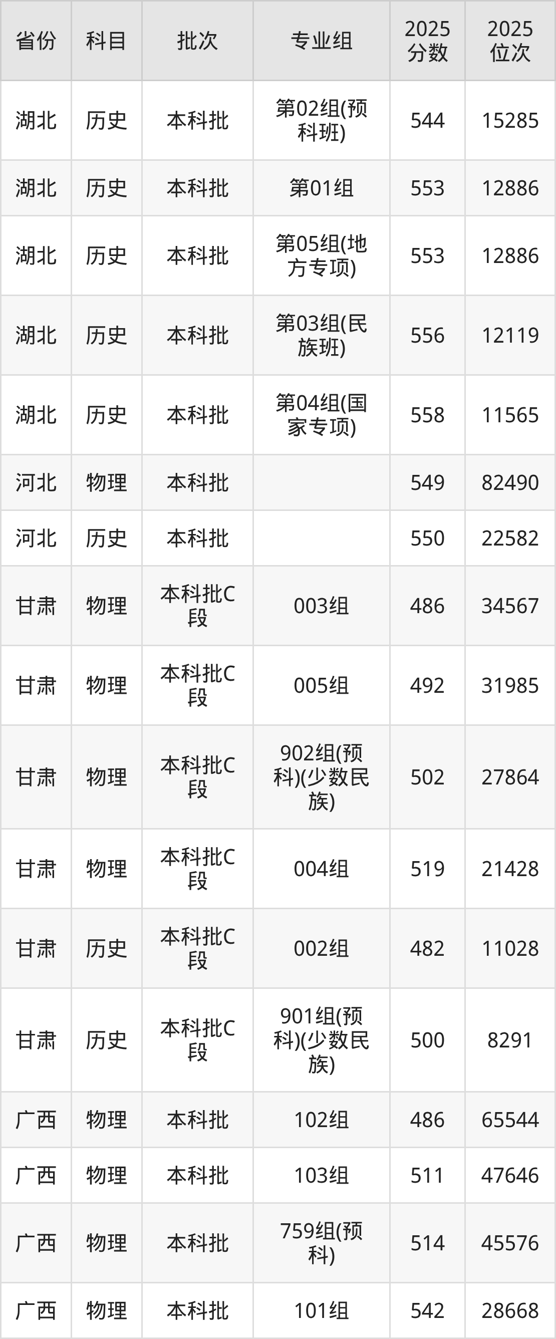 三峡大学第14组(民族班):2025年投档录取最低分为543分,录取最低位次为49947名。