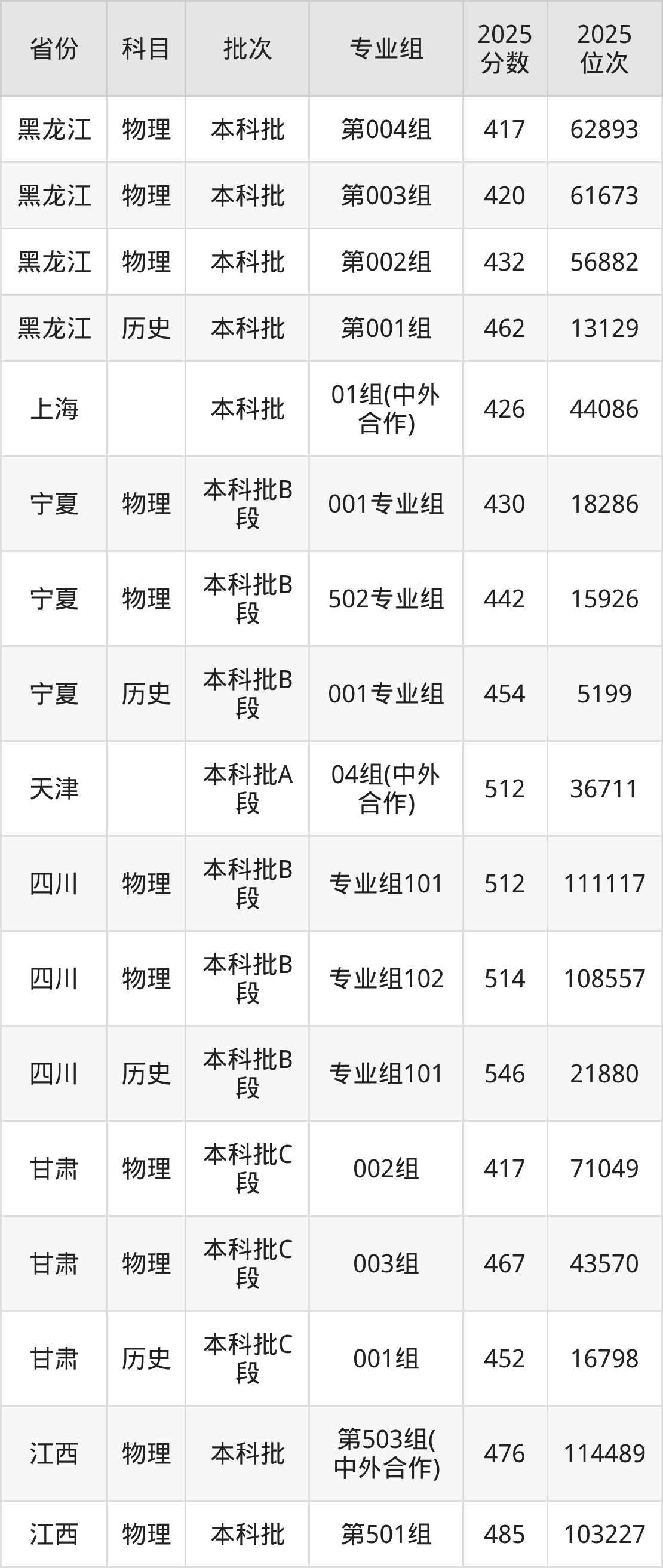 2025年投档录取最低分为392分,录取最低位次为8365名。