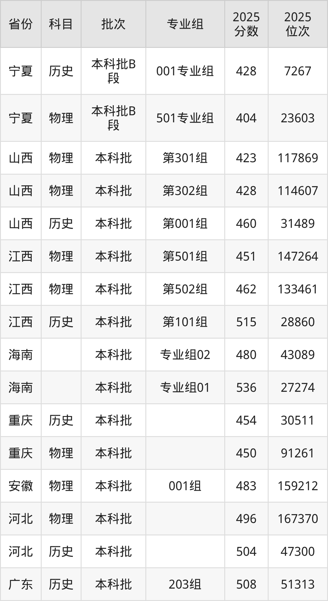2025年投档录取最低分为454分,录取最低位次为30511名。
