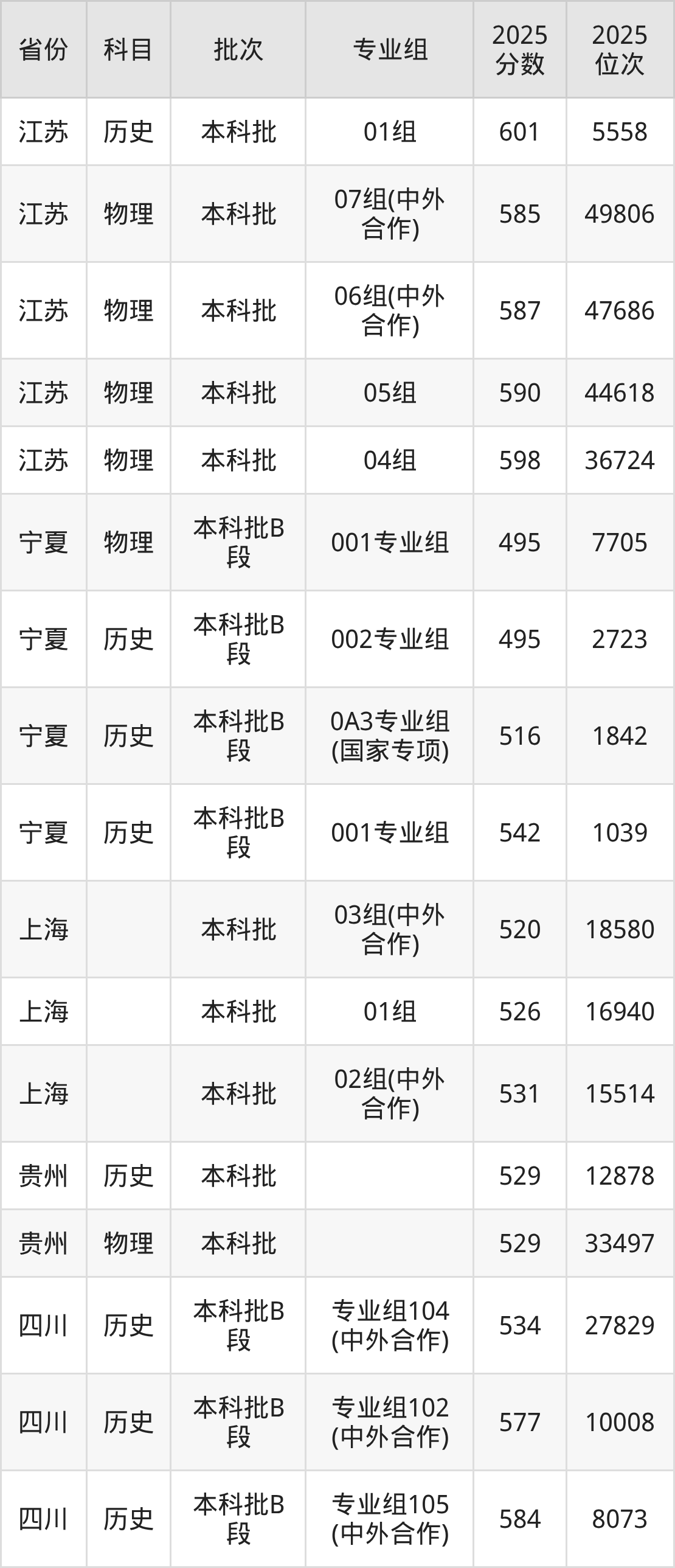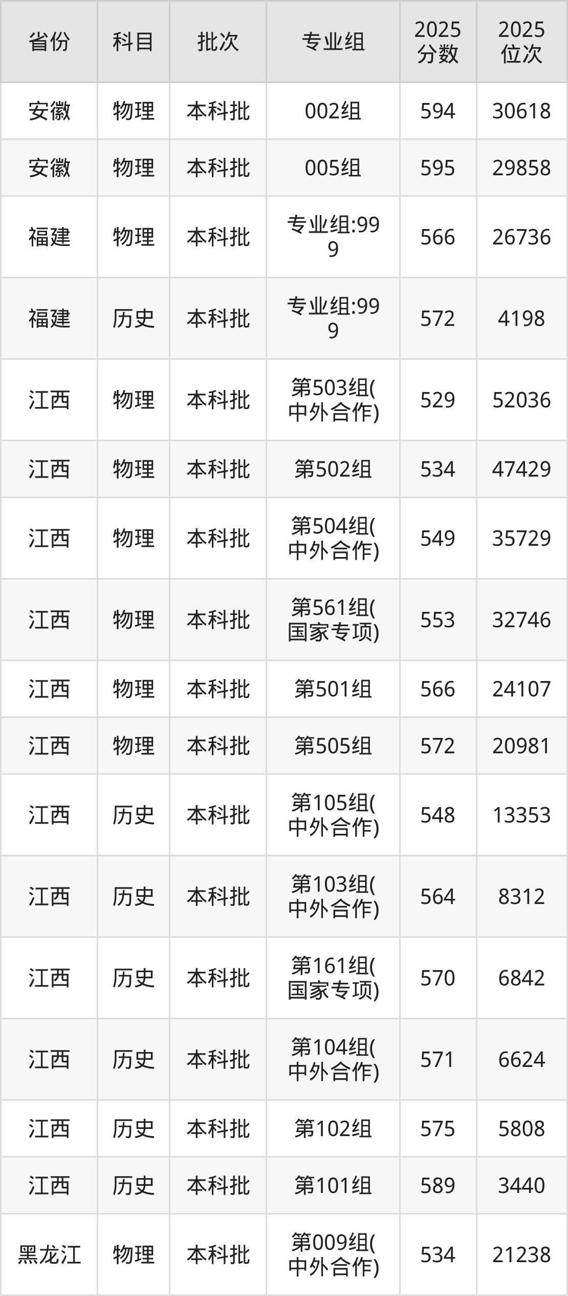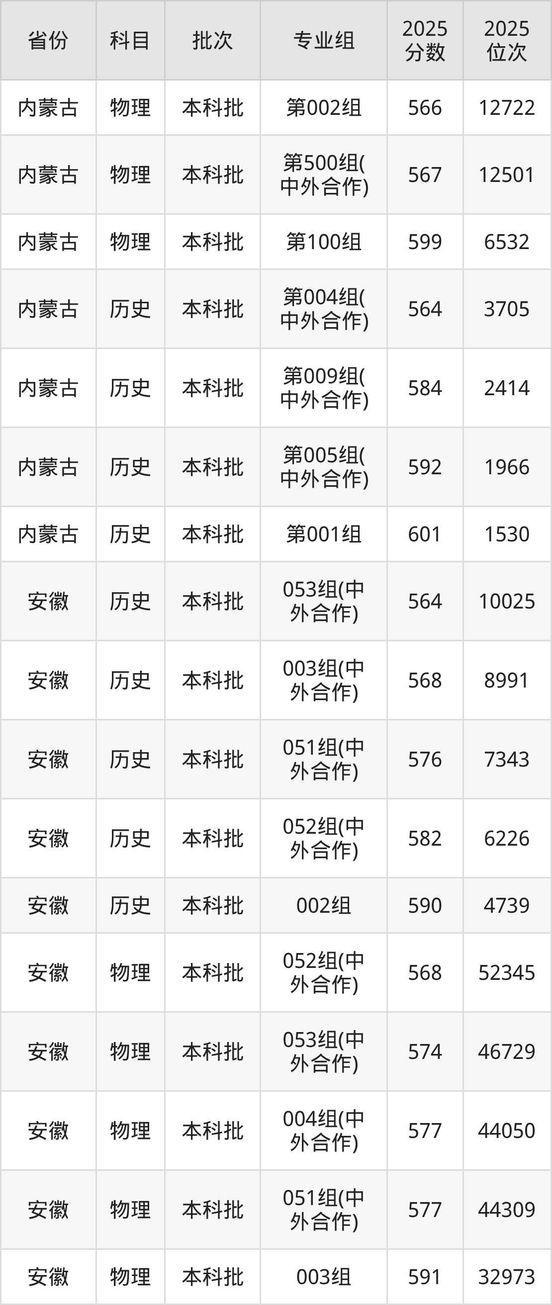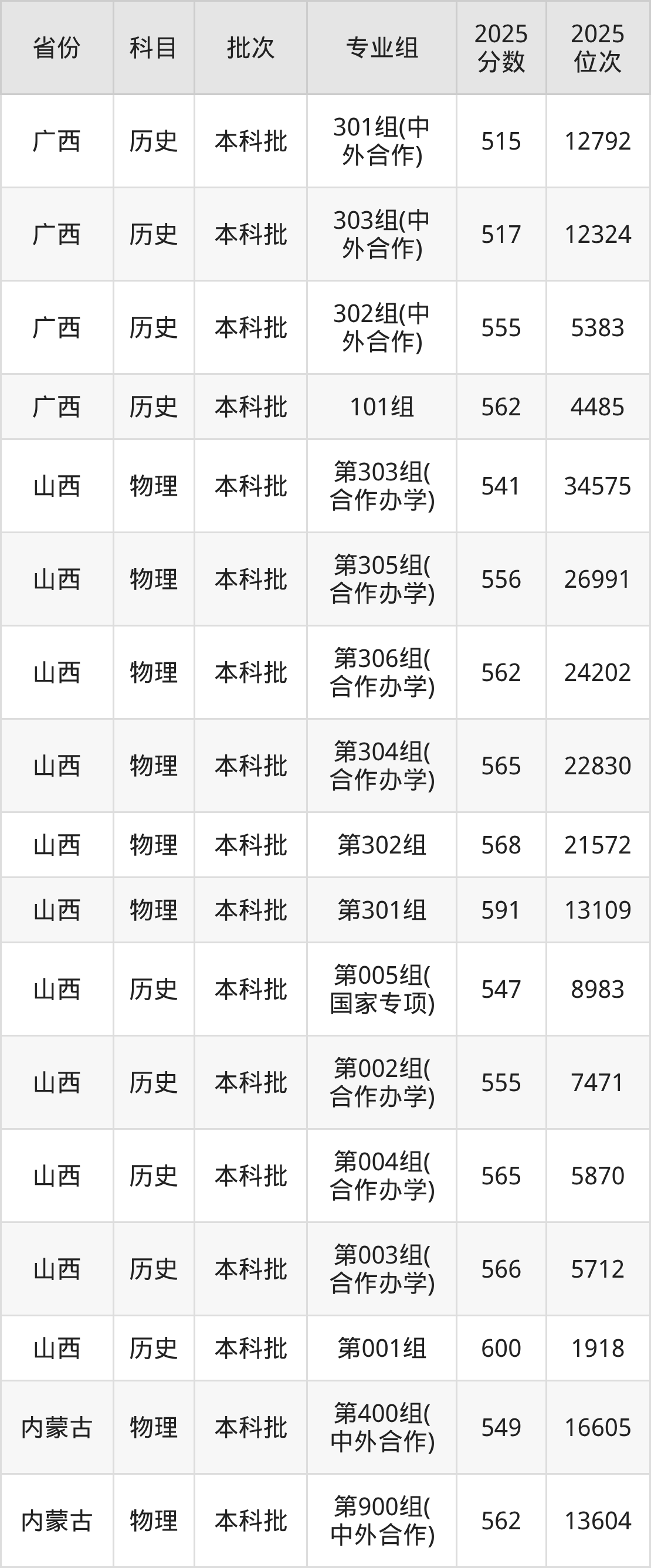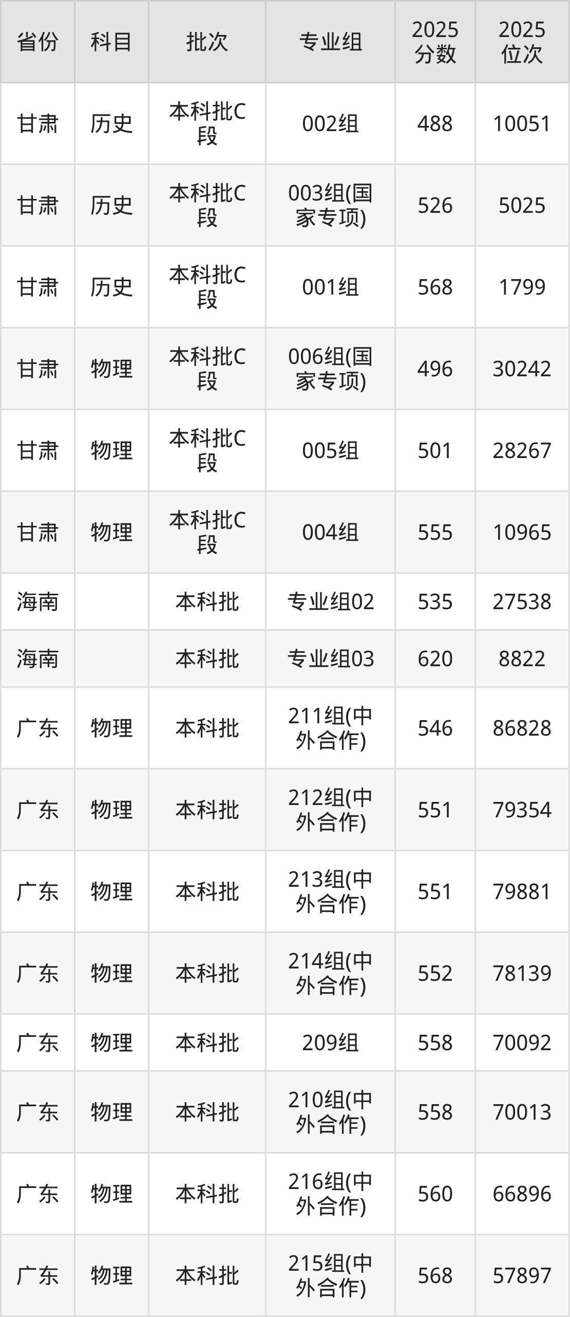 金融学(中外合作办学)(与英国奥斯特大学合作办学):2025年投档录取最低分为596分。