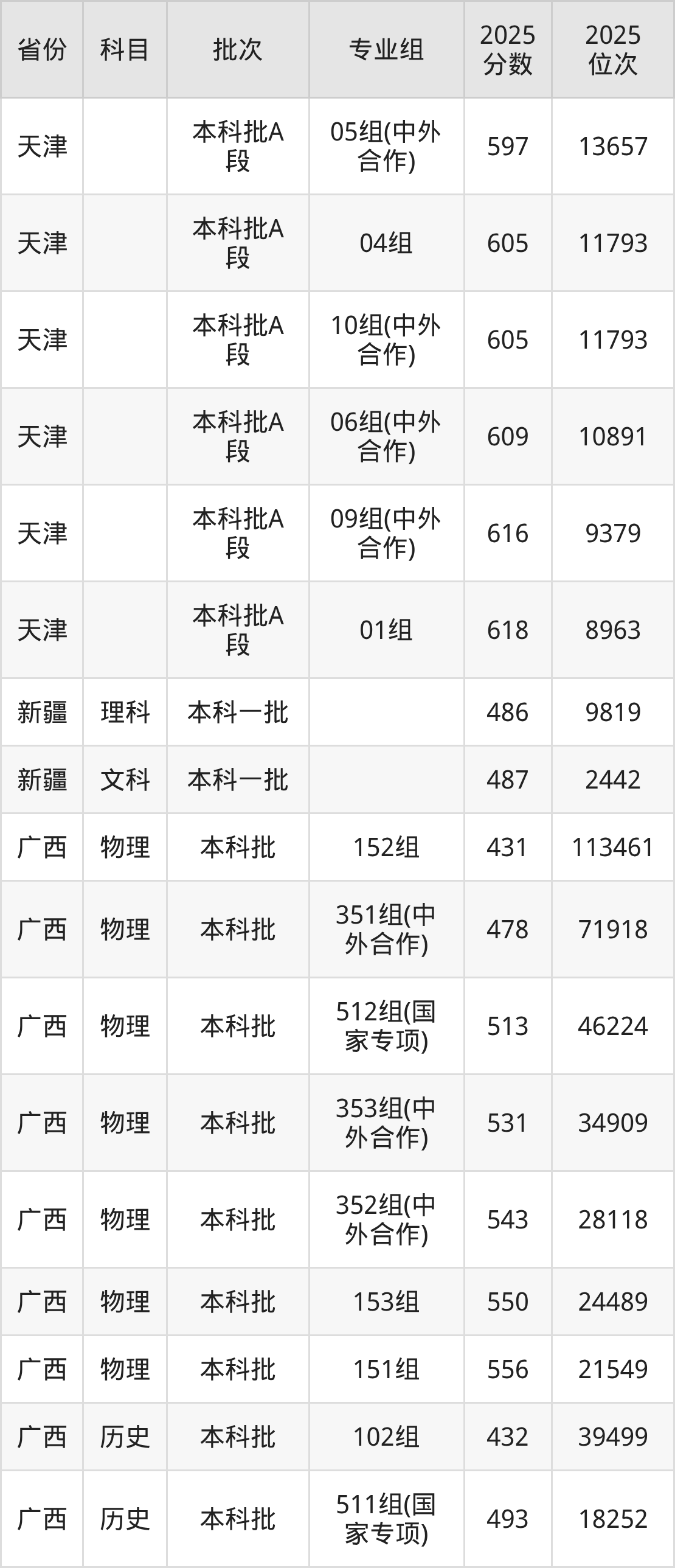 会计学(中外合作办学)(与澳大利亚科廷大学合作办学):2025年投档录取最低分为606分。