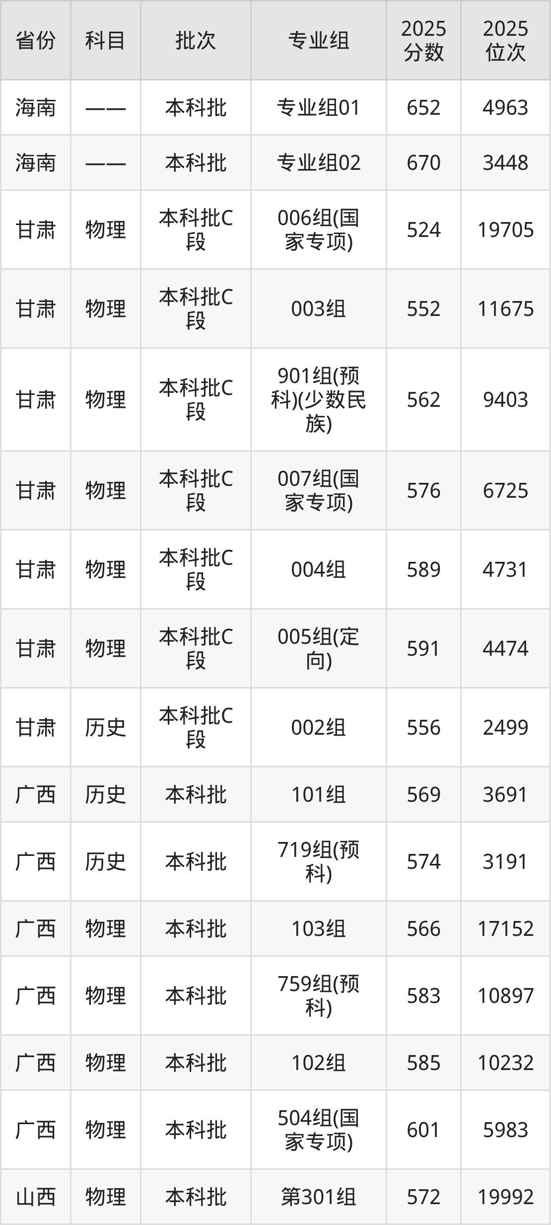 普通类本科物理类最低572分,本科历史类最低590分