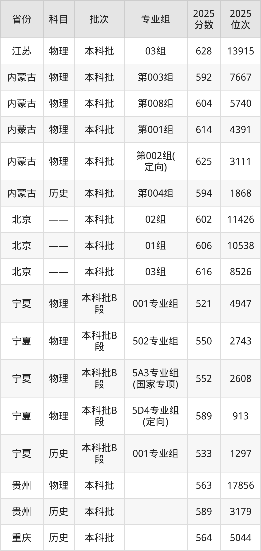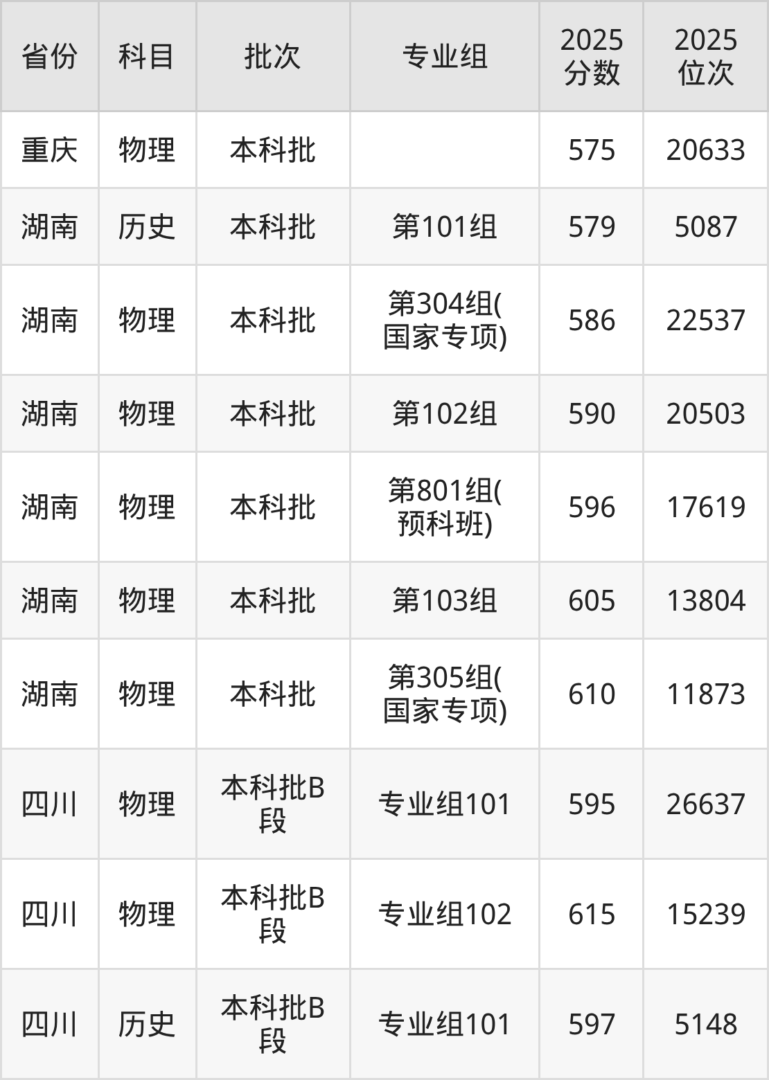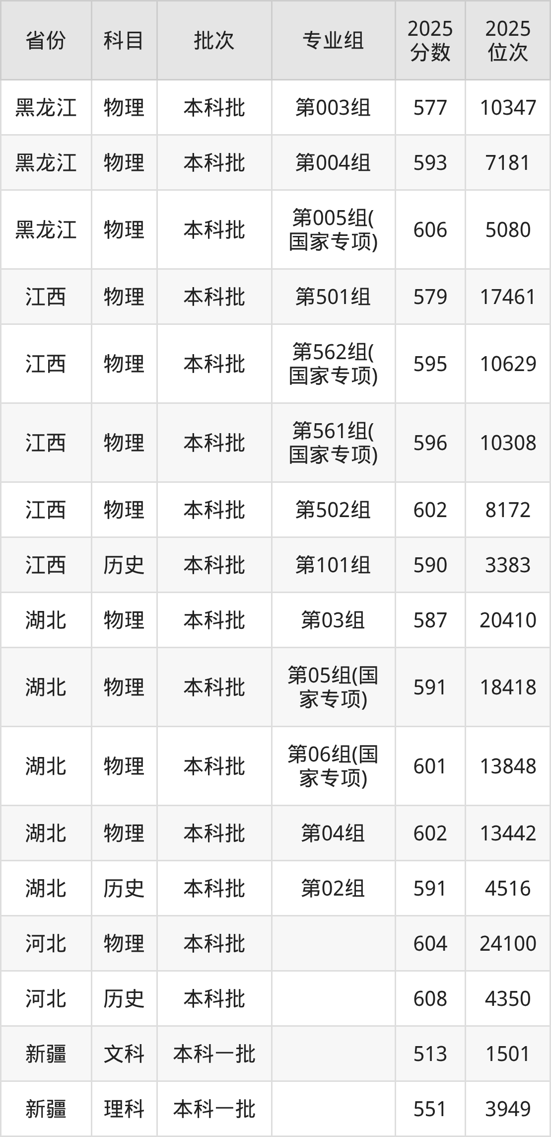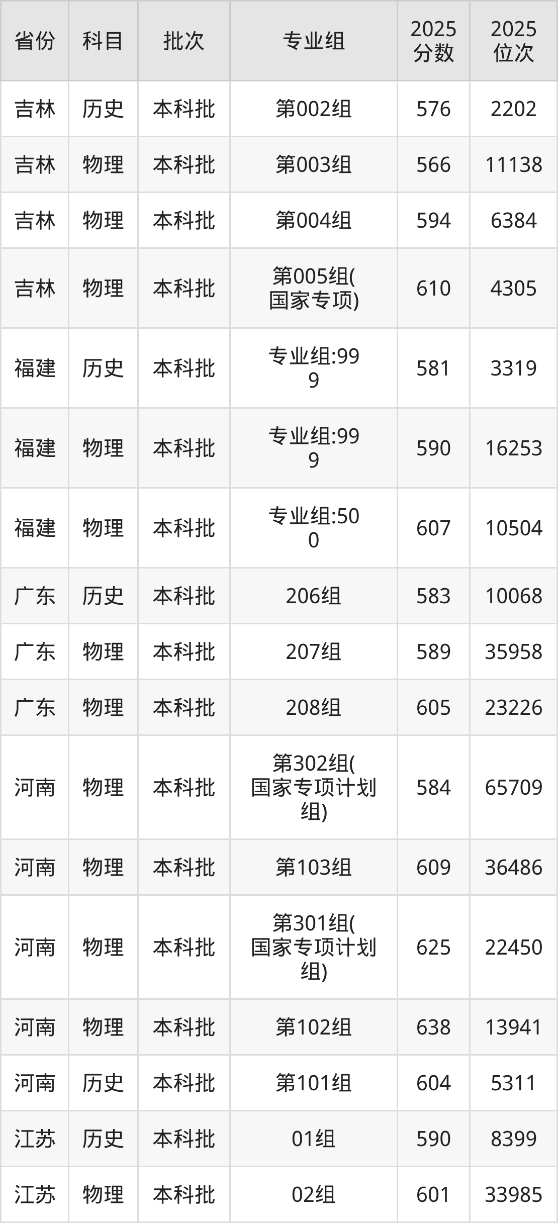 普通类本科物理类最低595分,本科历史类最低597分
