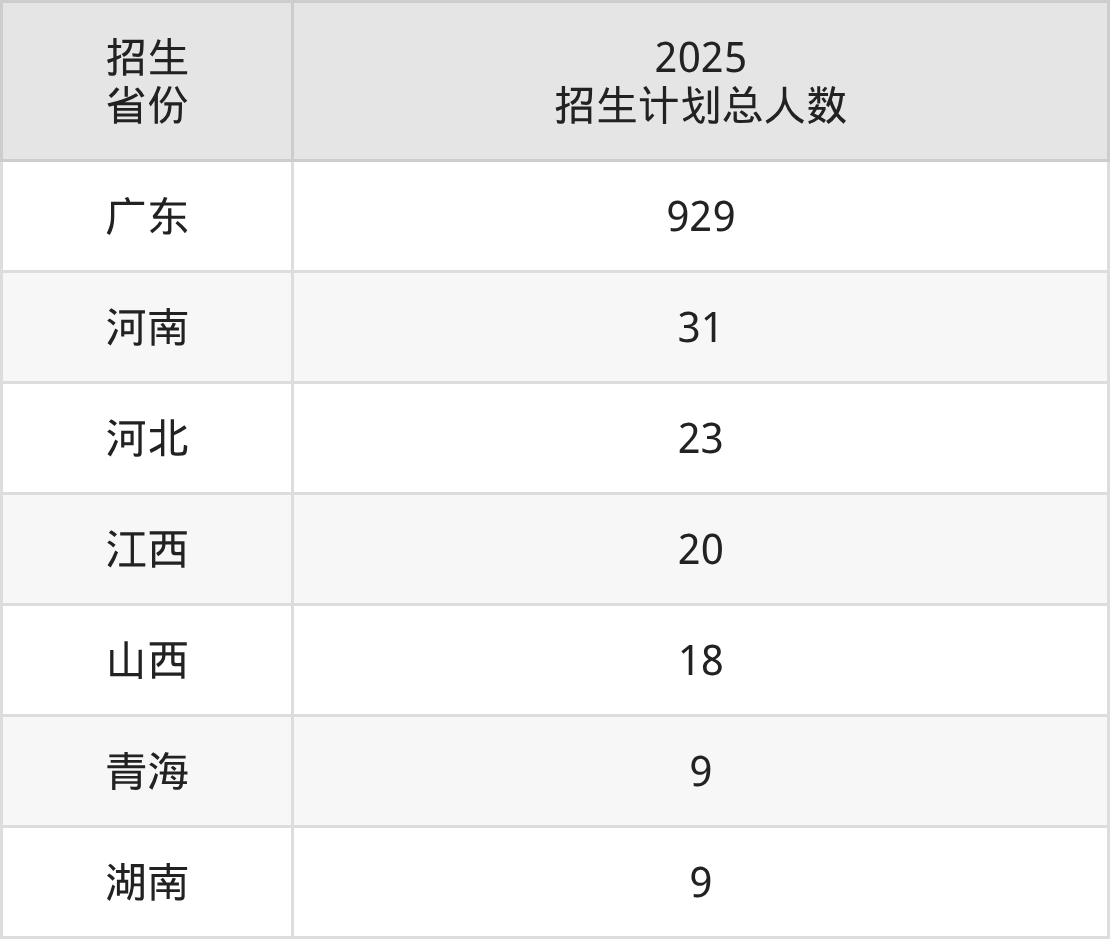 2025年惠州工程职业学院面向全国7个省市开展专科招生;招生专业共27个,招生人数共1039人。2025年在广东省招生计划总人数是929人,其中,惠州工程职业学院在广东省招生人数最多的是数字媒体技术。惠州工程职业学院在各省具体招生人数情况如下表。