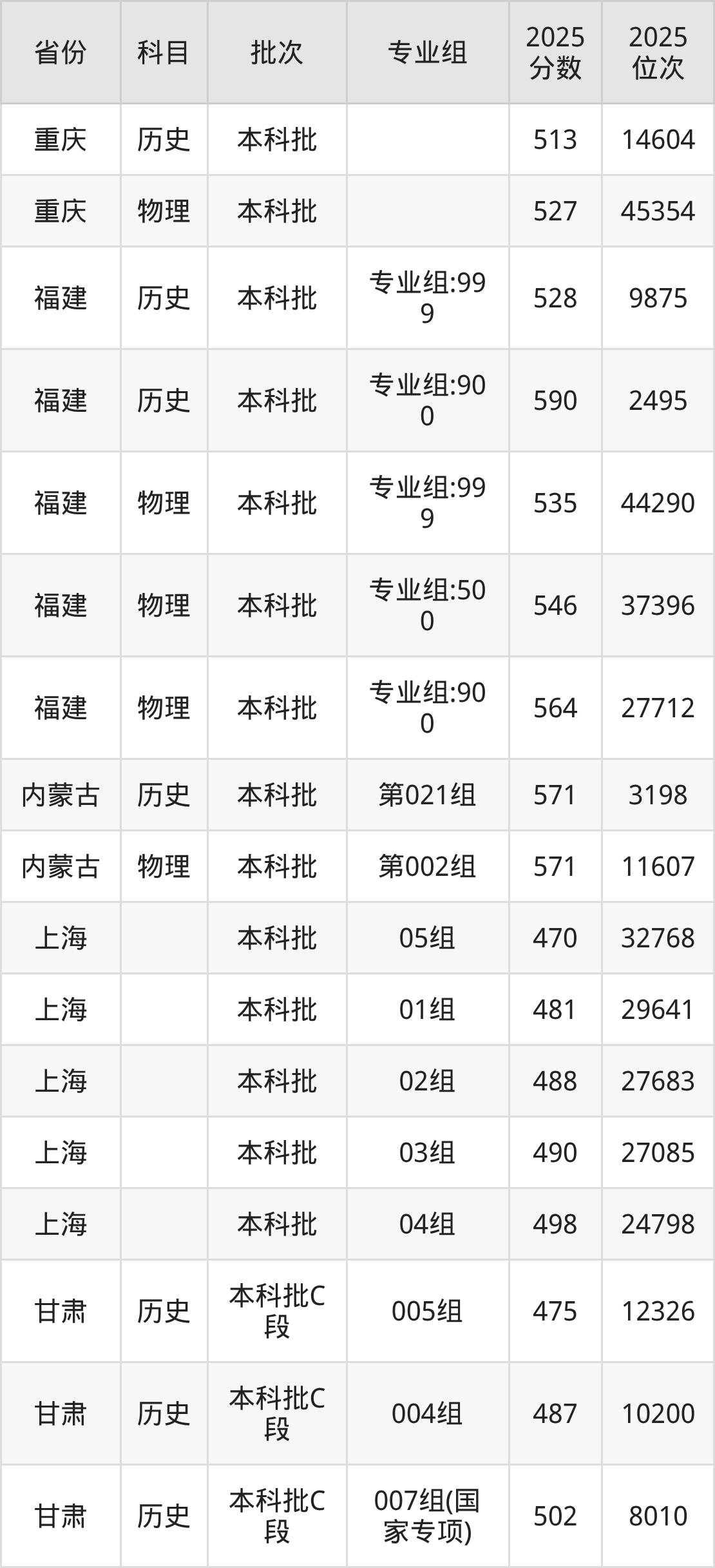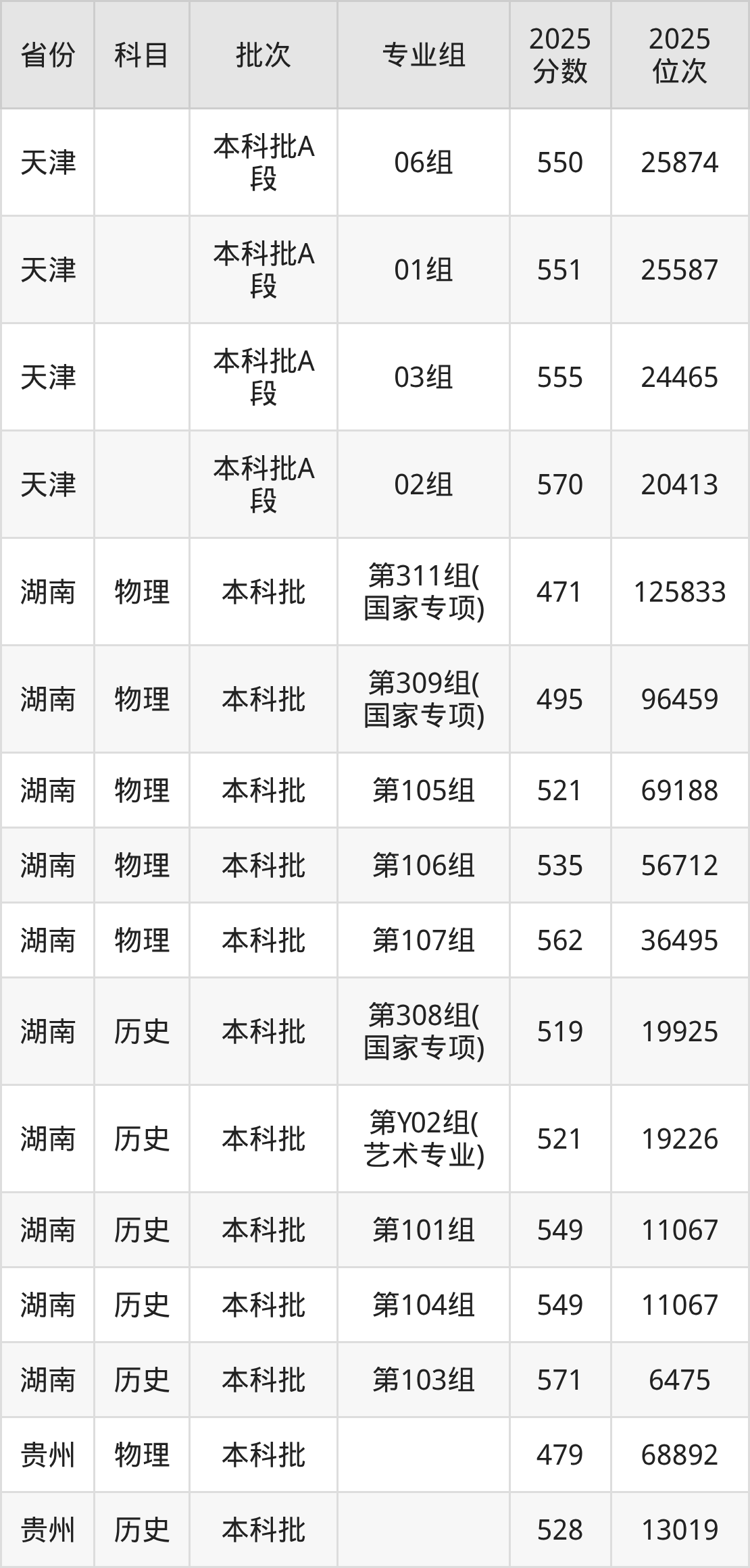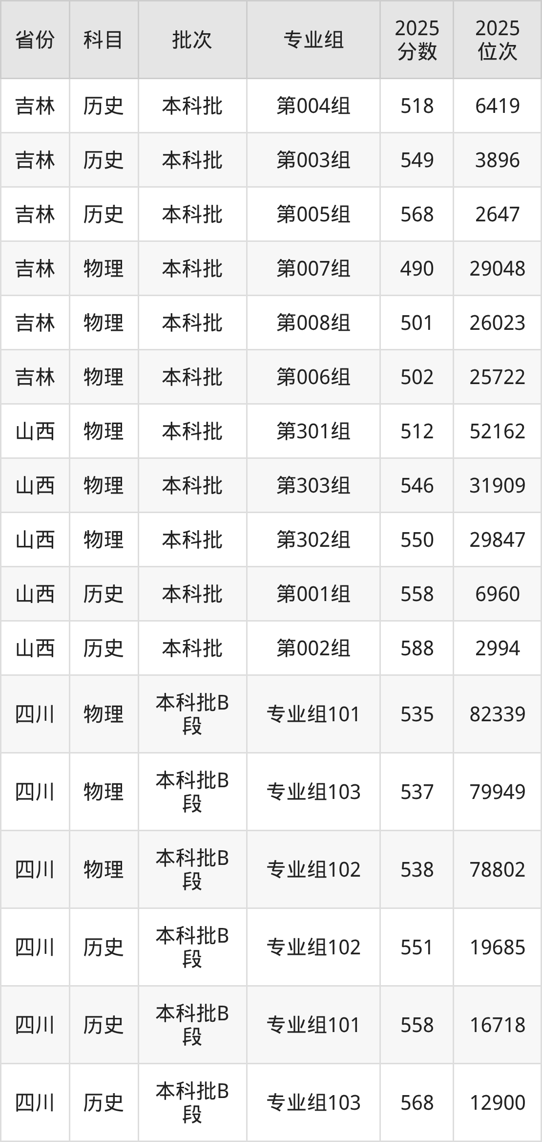 2025年投档录取最低分为519分,录取最低位次为47262名。