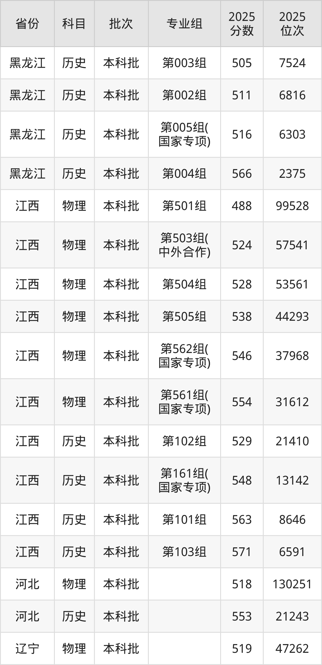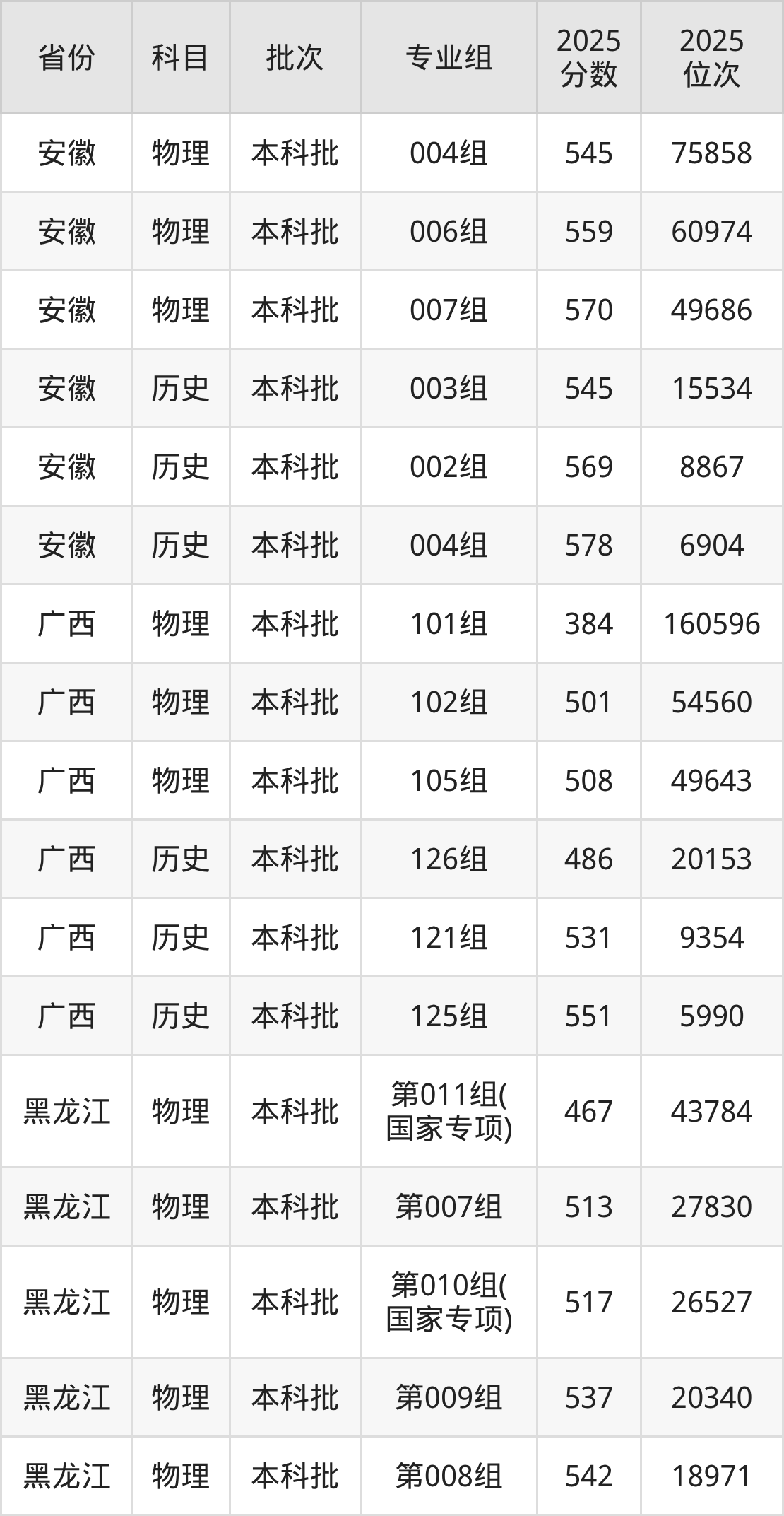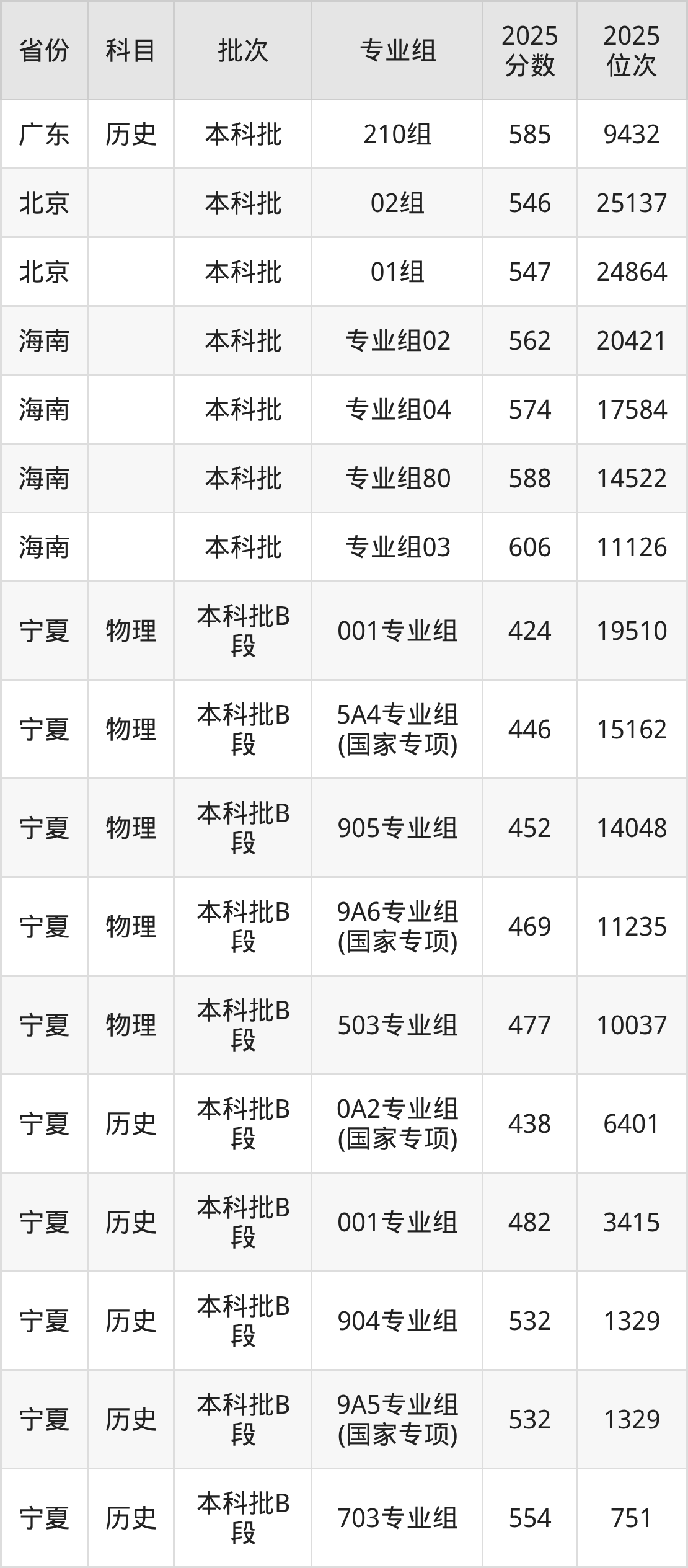 2025年投档录取最低分为519分,录取最低位次为47262名。