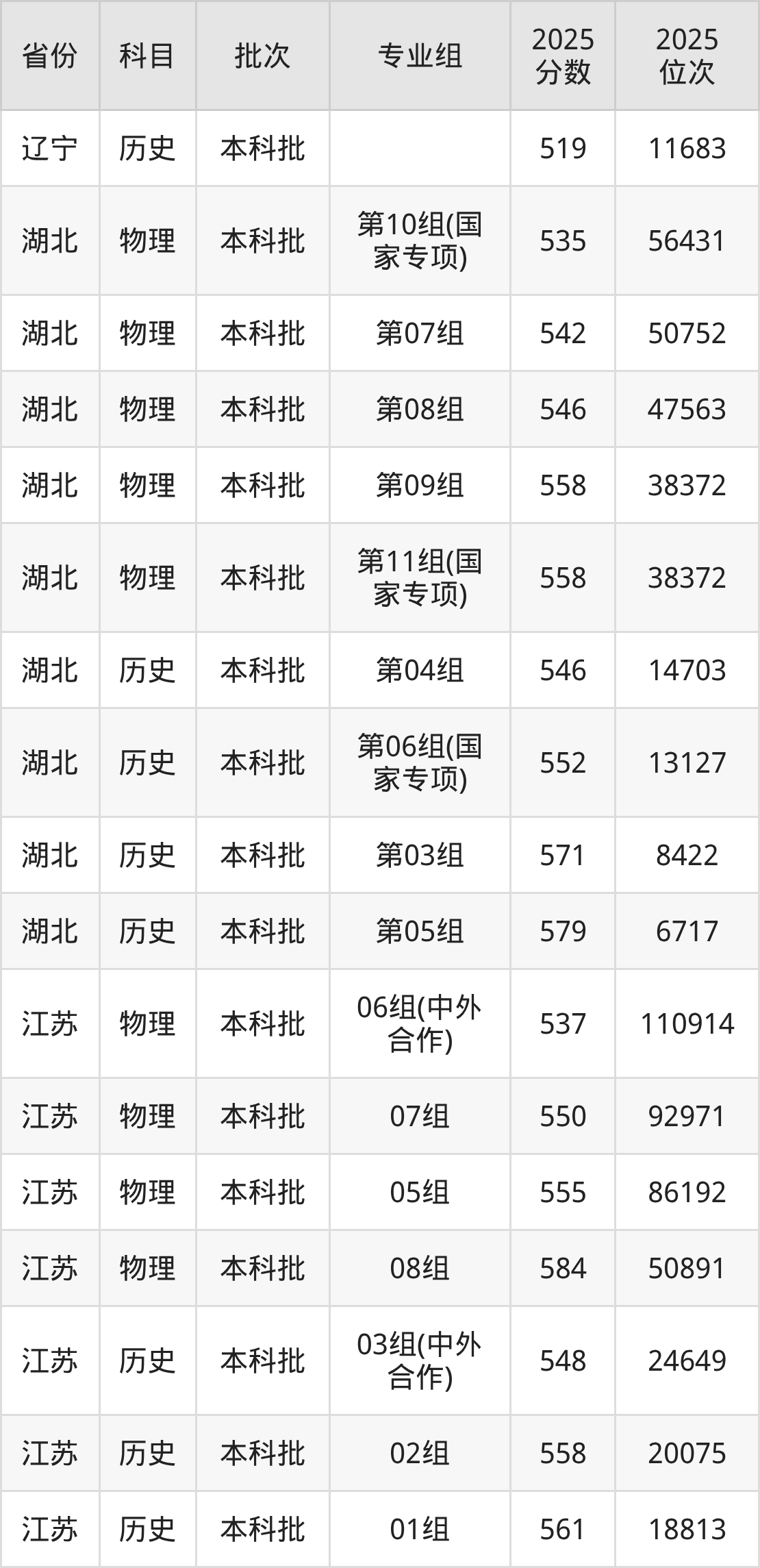 2025年投档录取最低分为519分,录取最低位次为11683名。