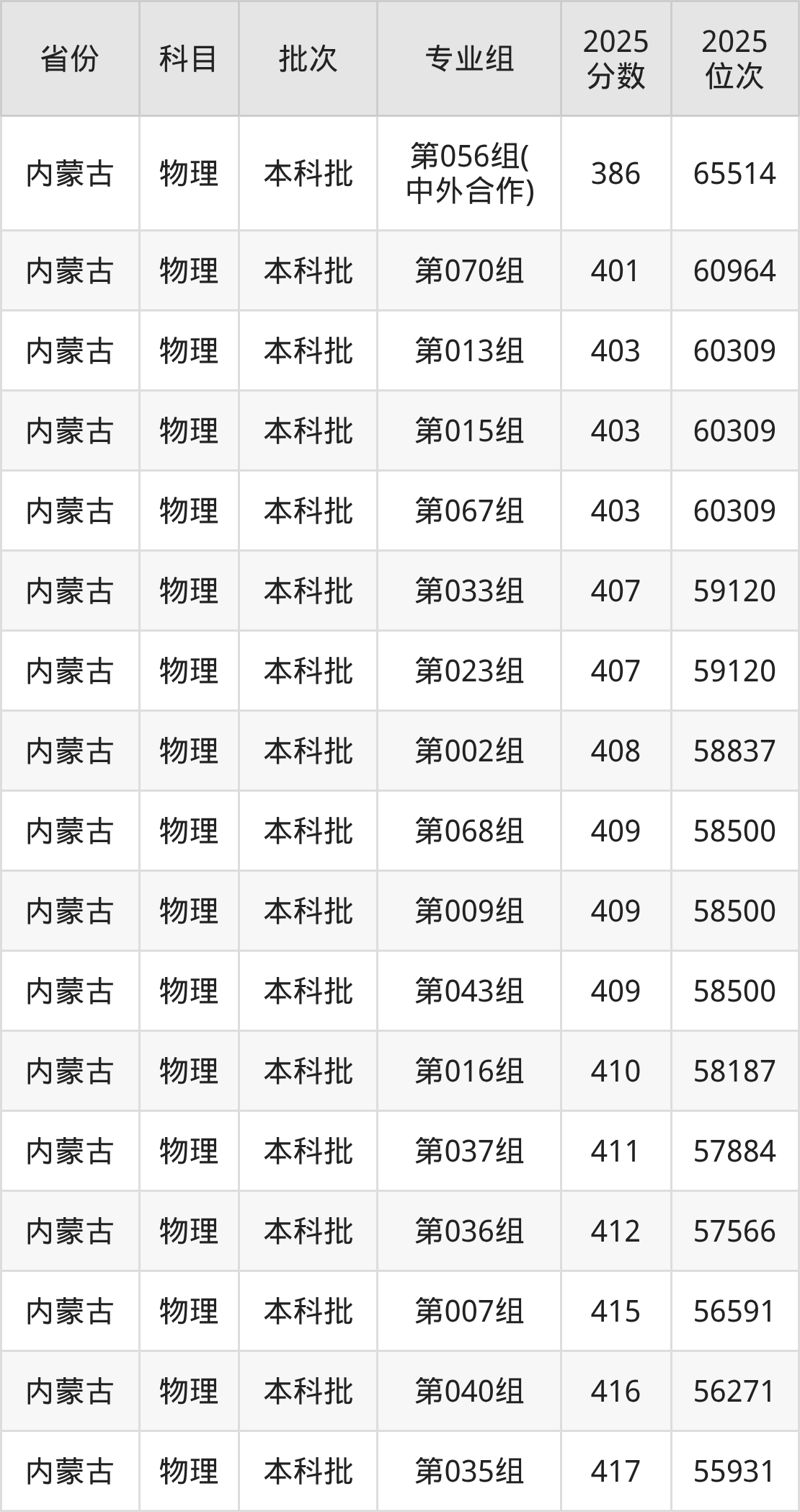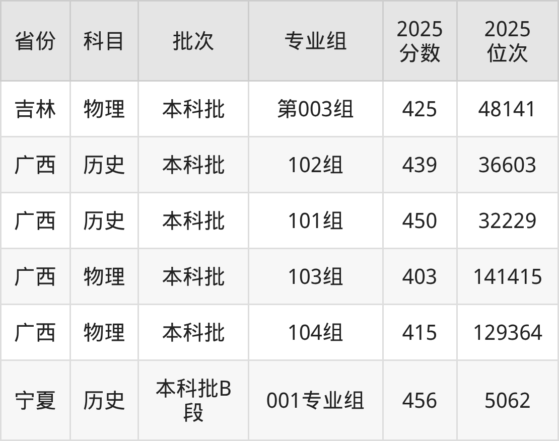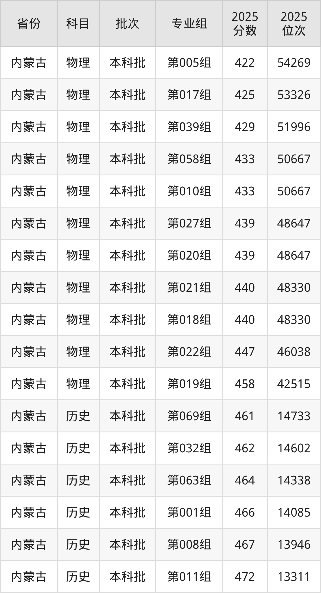 2025年在本科物理类进行招生,各专业组分数线详情如下: