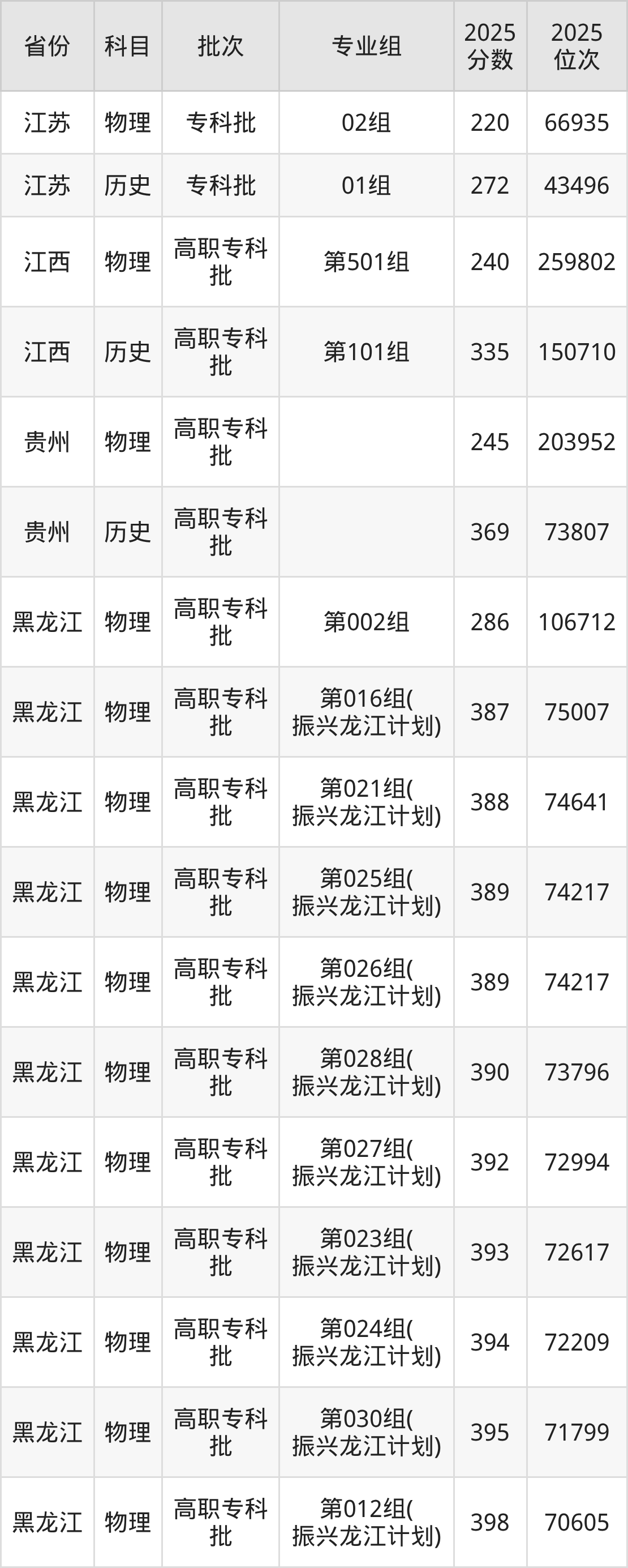 下面是2025年黑龙江生态工程职业学院全国录取分数线一览表,请查阅。