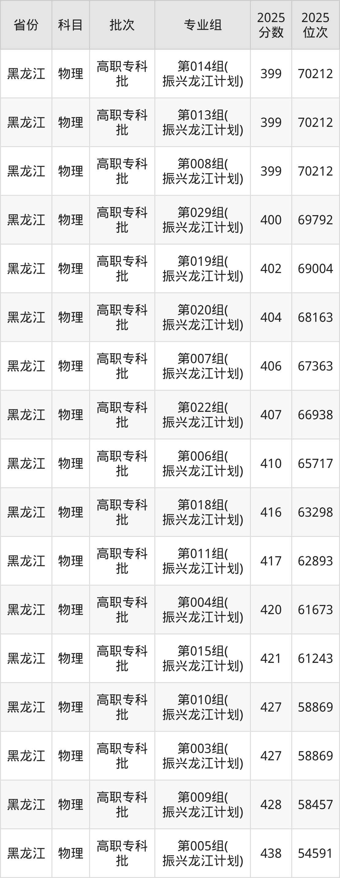 黑龙江生态工程职业学院第002组:2025年投档录取最低分为230分,录取最低位次为78524名。