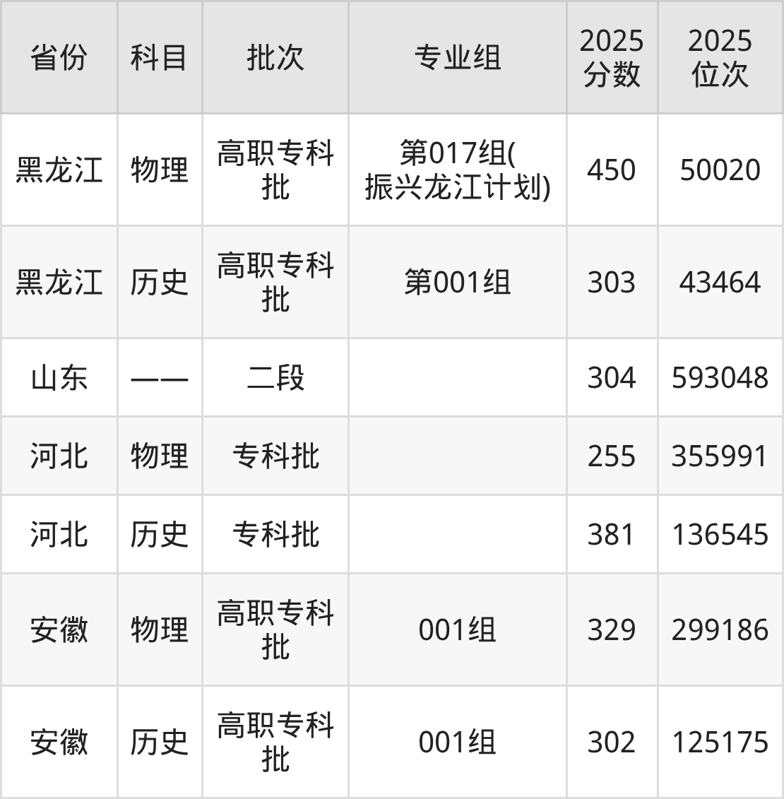 黑龙江生态工程职业学院专业组101:2025年投档录取最低分为302分,录取最低位次为277596名。