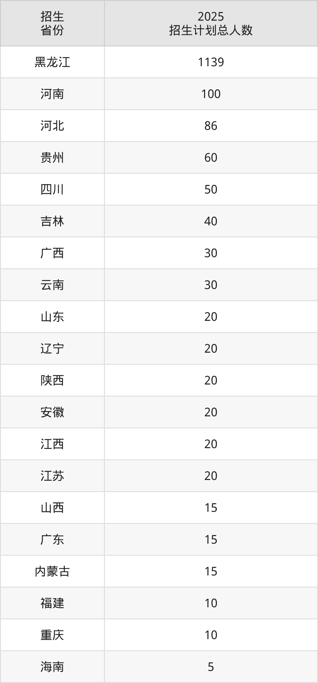 2025年黑龙江生态工程职业学院面向全国20个省市开展专科招生;招生专业共37个,招生人数共1725人。