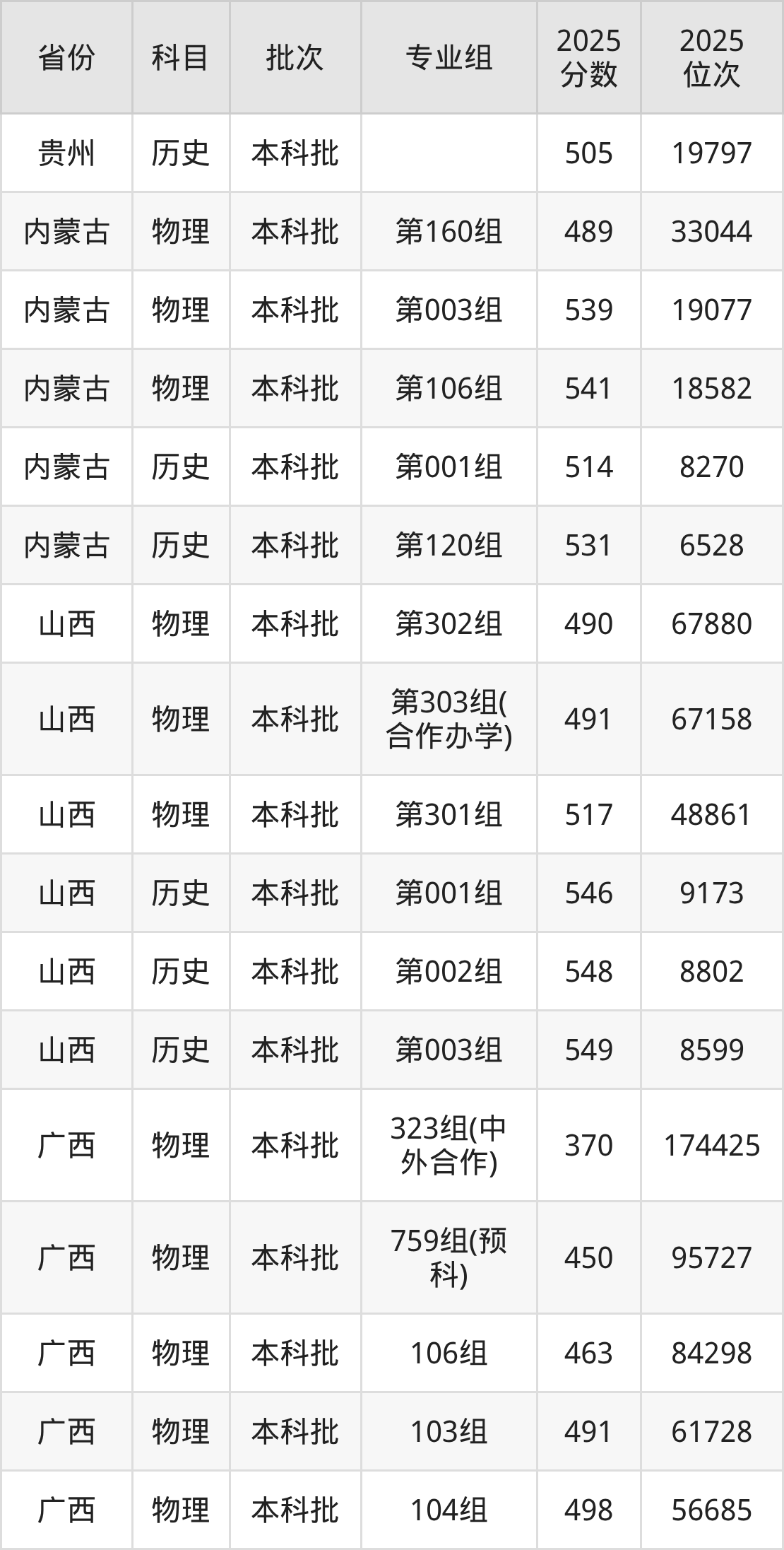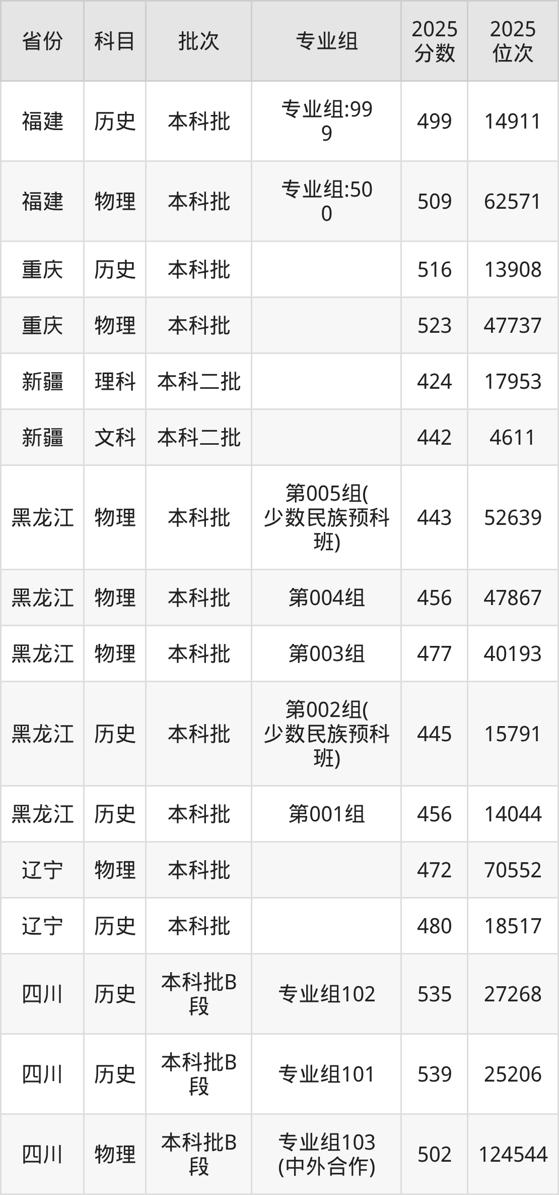 2025年投档录取最低分为505分,录取最低位次为19797名。
