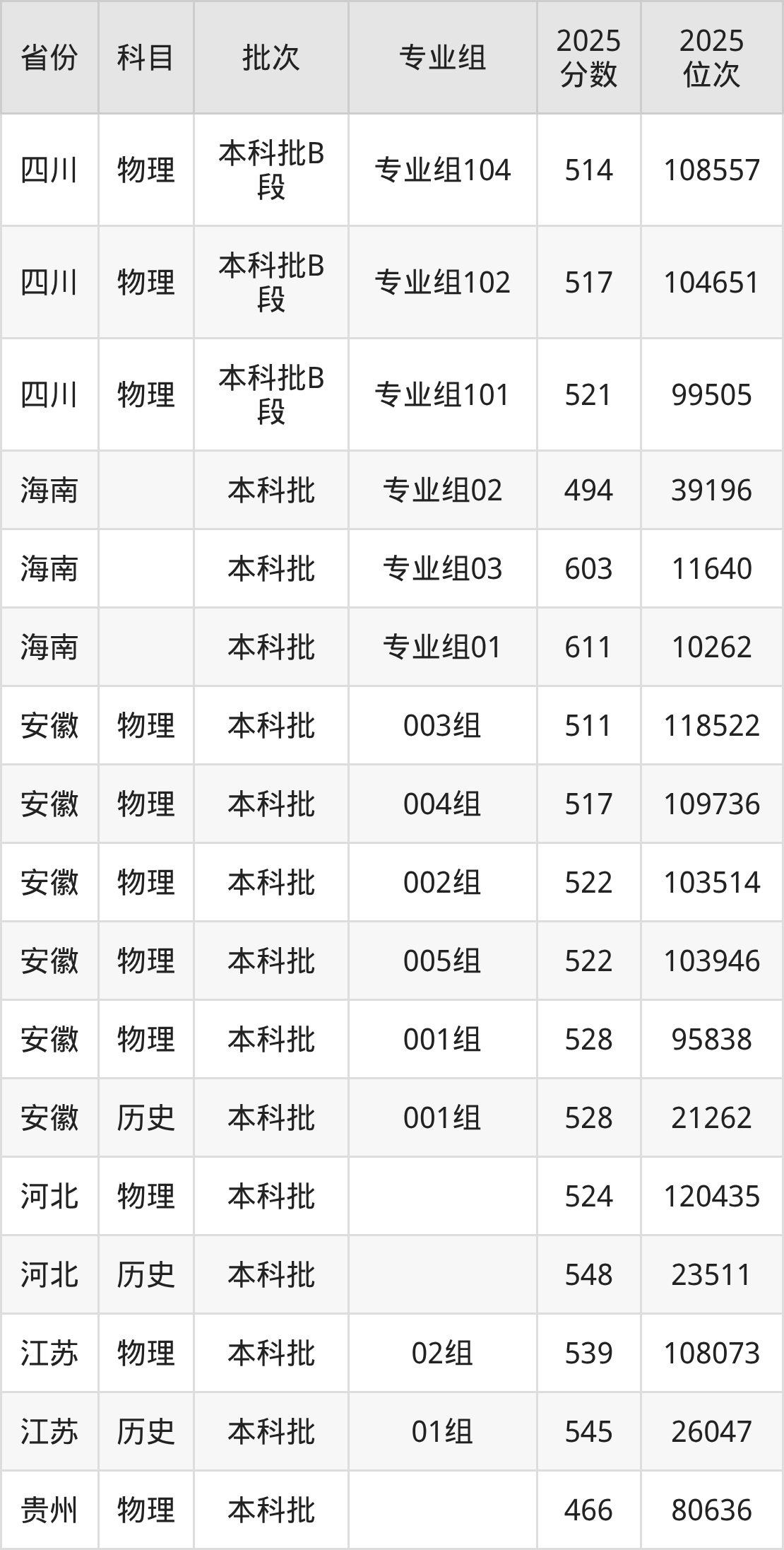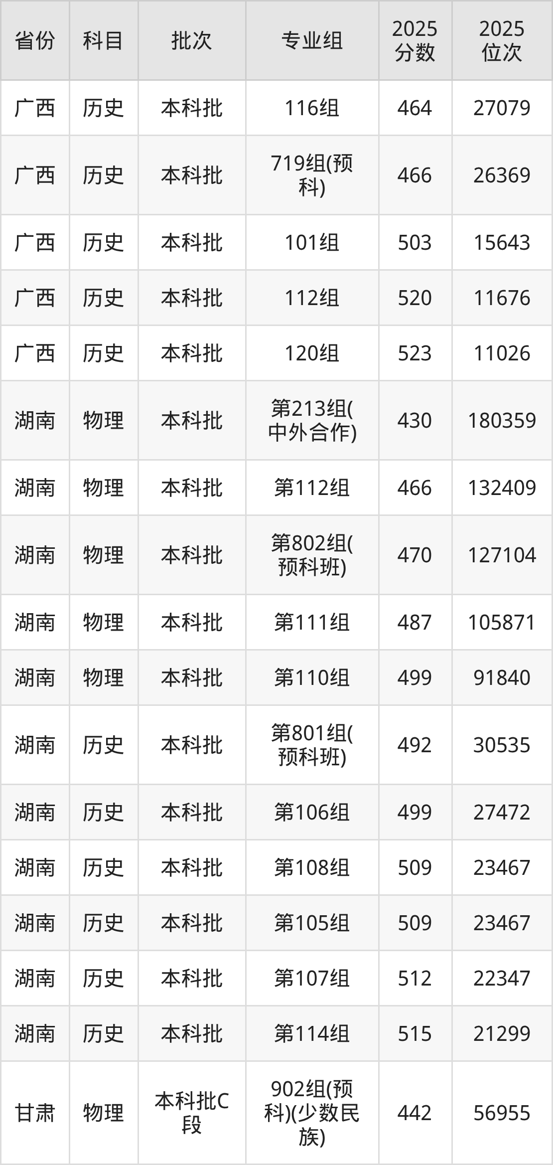 2025年投档录取最低分为466分,录取最低位次为80636名。