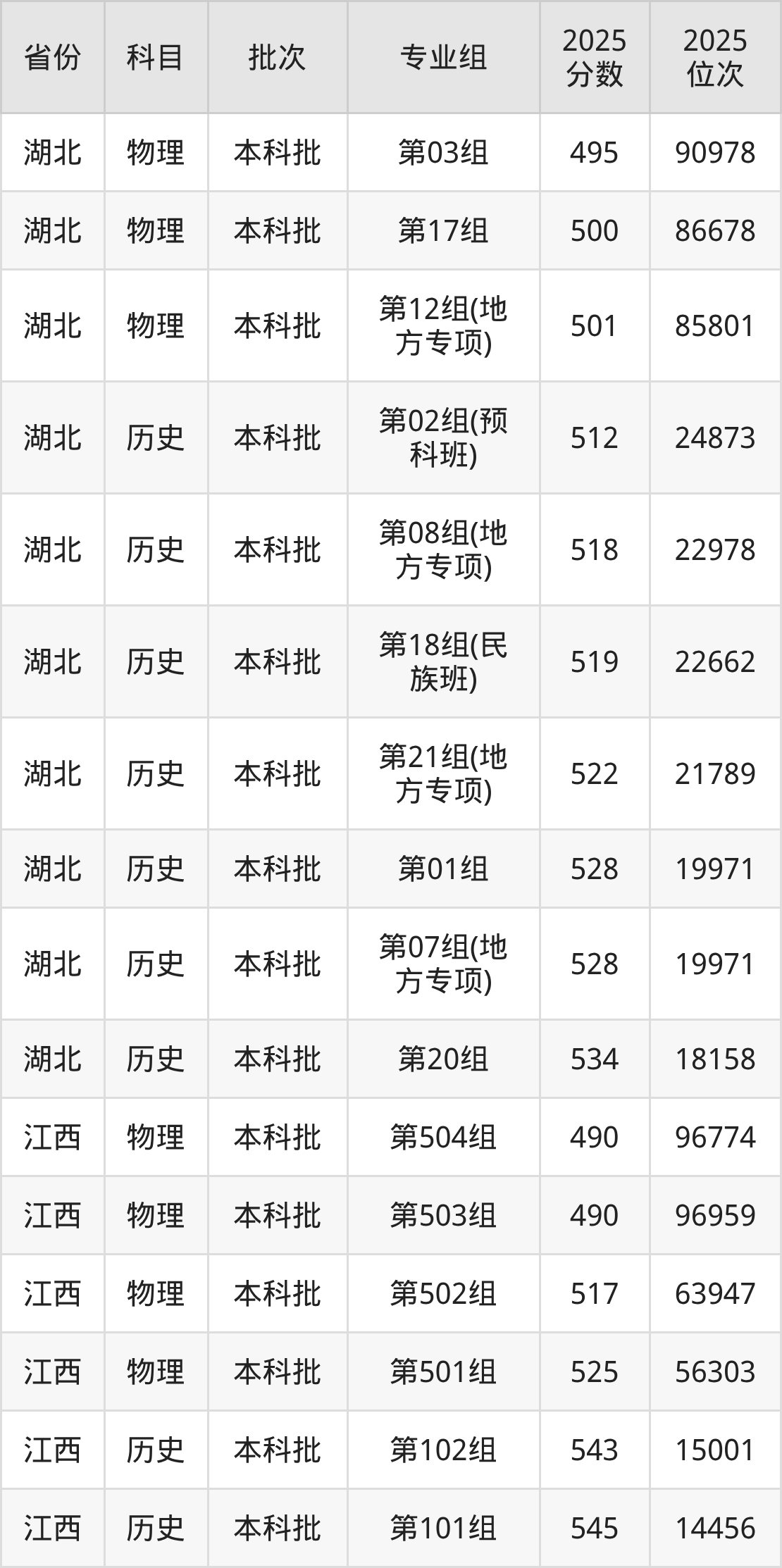 湖北民族大学第08组(地方专项计划):2025年投档录取最低分为518分,录取最低位次为22978名。
