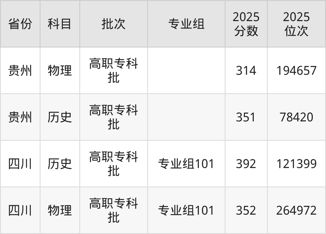 云南旅游职业学院2025招生录取分数线已公布,2025年云南旅游职业学院在贵州省专科物理类投档录取最低分314分。在四川省专科历史类投档录取最低分392分,更多省份具体录取分数线详见下文。