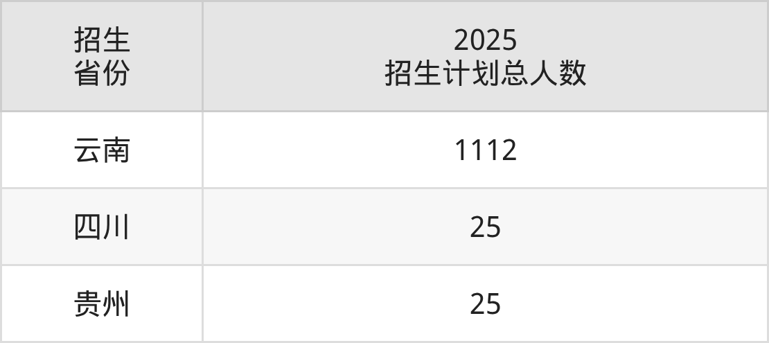 2025年云南旅游职业学院面向全国3个省市开展专科招生;招生专业共40个,招生人数共1162人。2025年在云南省招生计划总人数是1112人,其中,云南旅游职业学院在云南省招生人数最多的是小学英语教育。云南旅游职业学院在各省具体招生人数情况如下表。