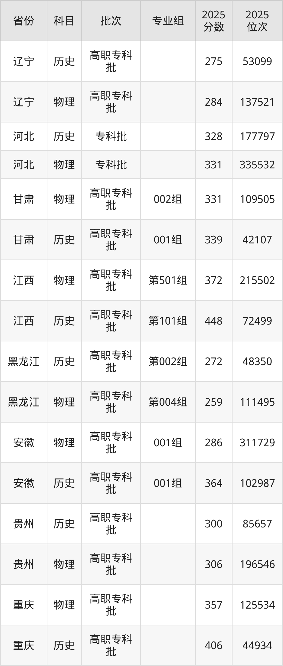 伊春职业学院第002组:2025年投档录取最低分为252分,录取最低位次为83218名。