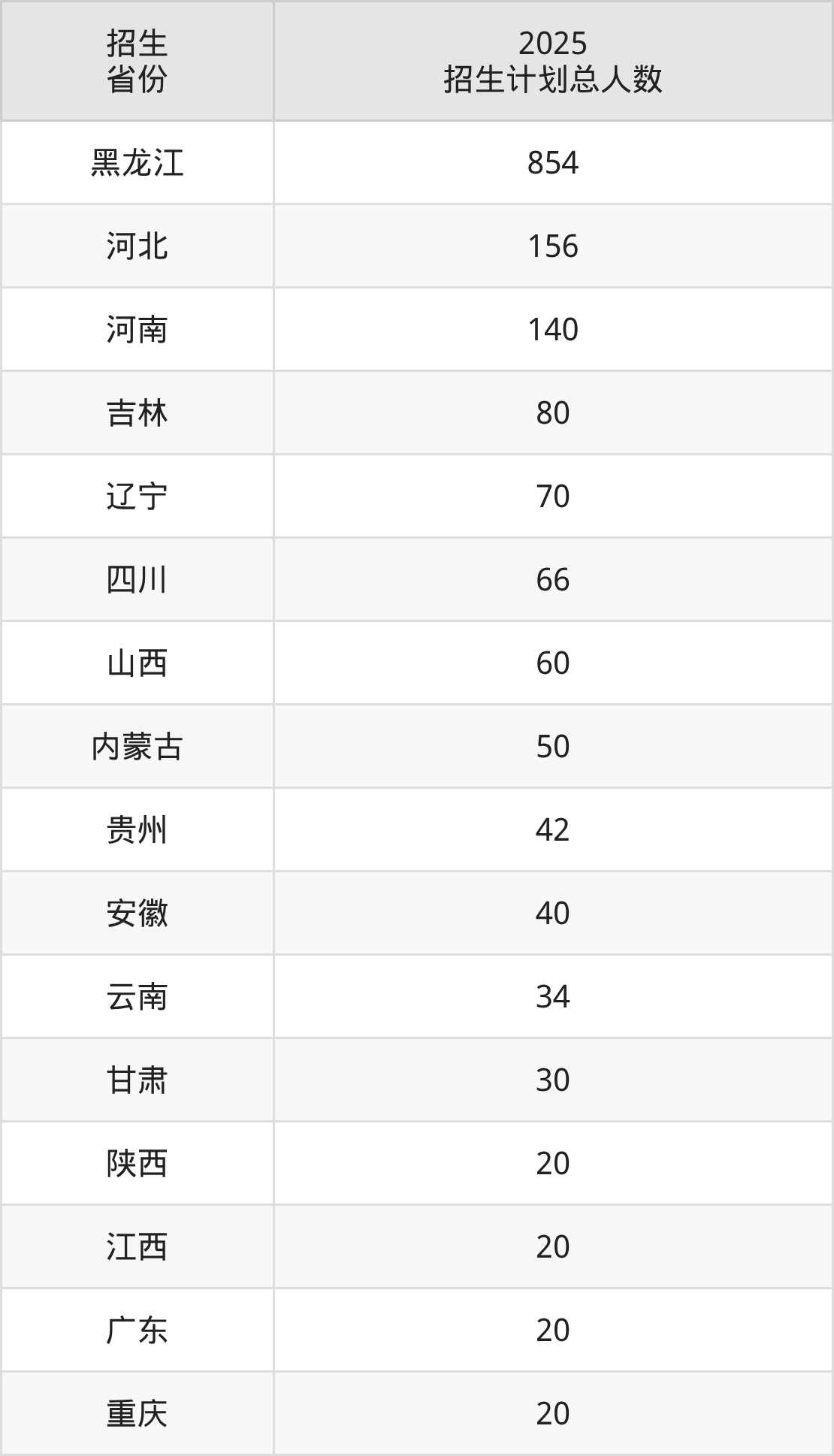 2025年伊春职业学院面向全国16个省市开展专科招生;招生专业共33个,招生人数共1702人。2025年在黑龙江省招生计划总人数是854人,其中,伊春职业学院在黑龙江省招生人数最多的是口腔医学。伊春职业学院在各省具体招生人数情况如下表。